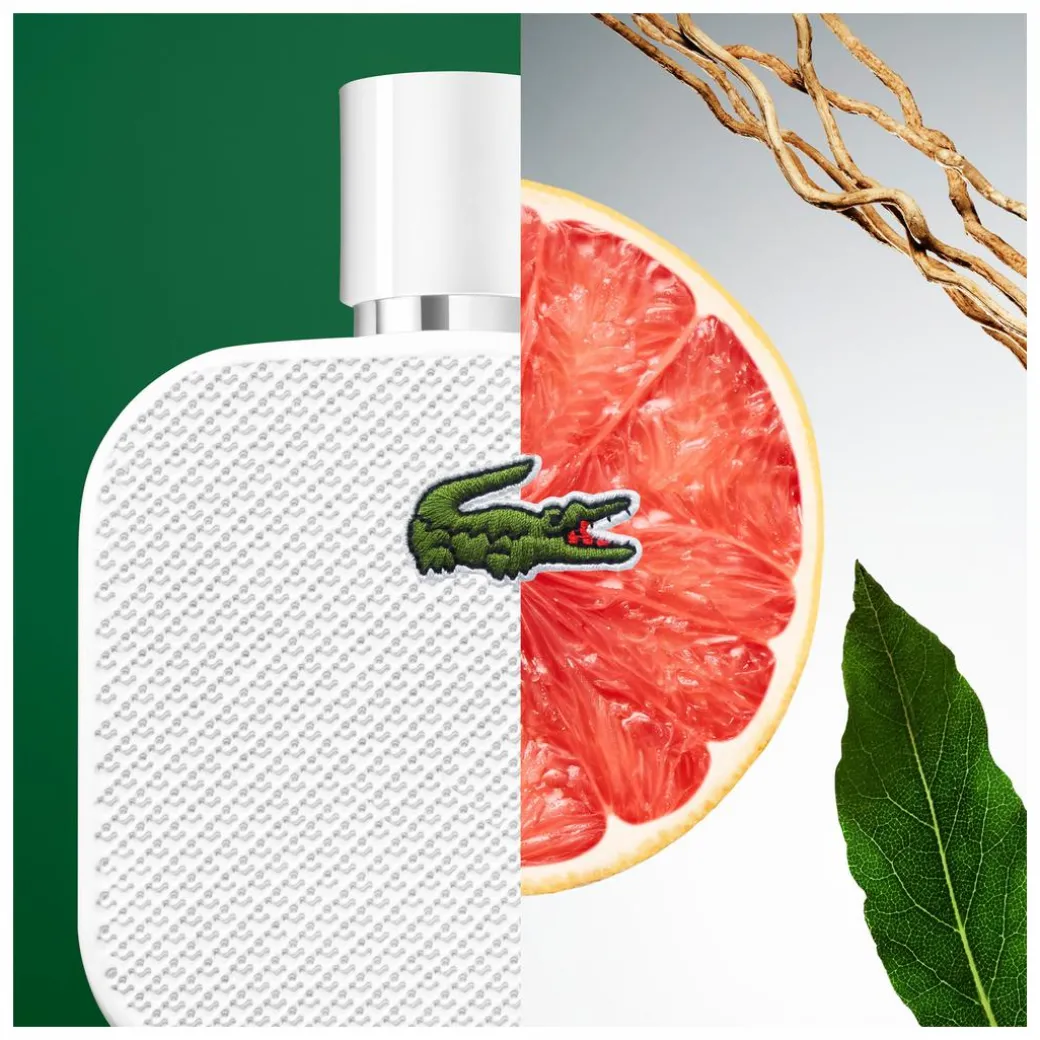 L.12.12 Blanc Eau de Toilette, inspired by the iconic Lacoste polo shirt, reveals a modern masculinity in a woody aromatic scent. Juicy grapefruit and spicy cardamom mix with vetiver and soft suede, culminating in a sense of elegance and comfort.