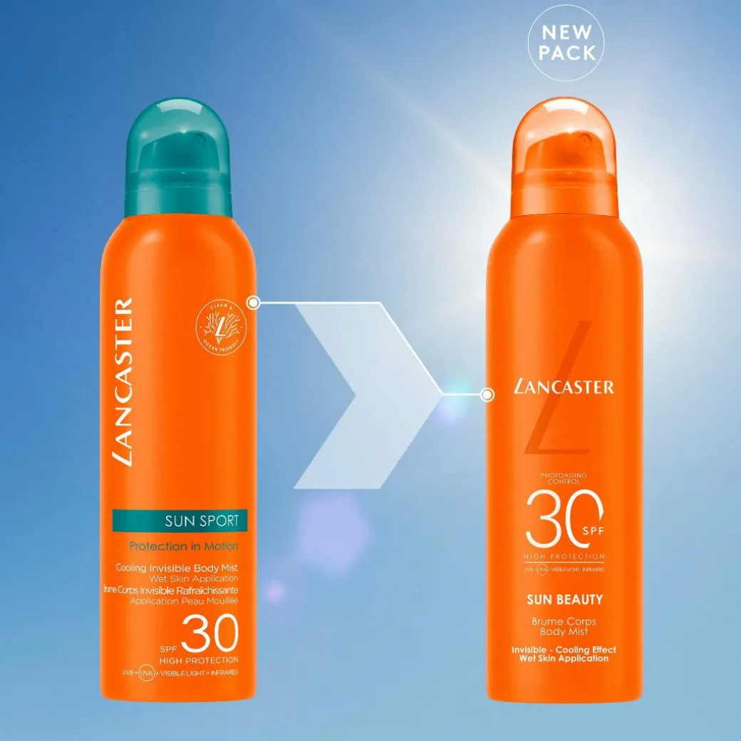 Lancaster’s Sun Beauty SPF50 Mist features a clean, vegan and ocean-friendly formulation with a biodegradable base that respects marine life.