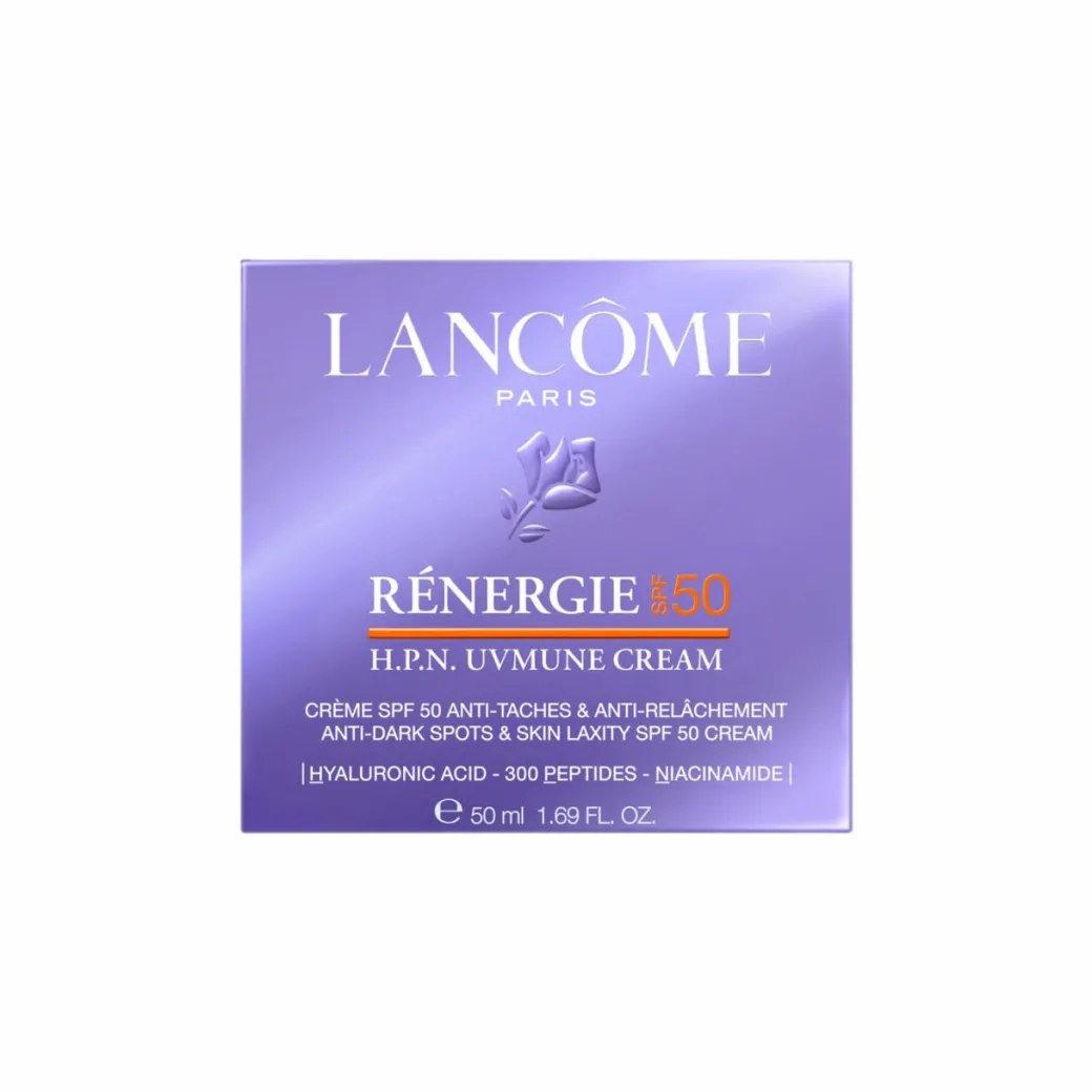 300-Peptide:Rénergie H.P.N. UVMUNE SPF50 Cream is highly concentrated with Lancome’s iconic 300-Peptides: over 300 types of peptides obtained from biotech, helping skin regenerate faster.