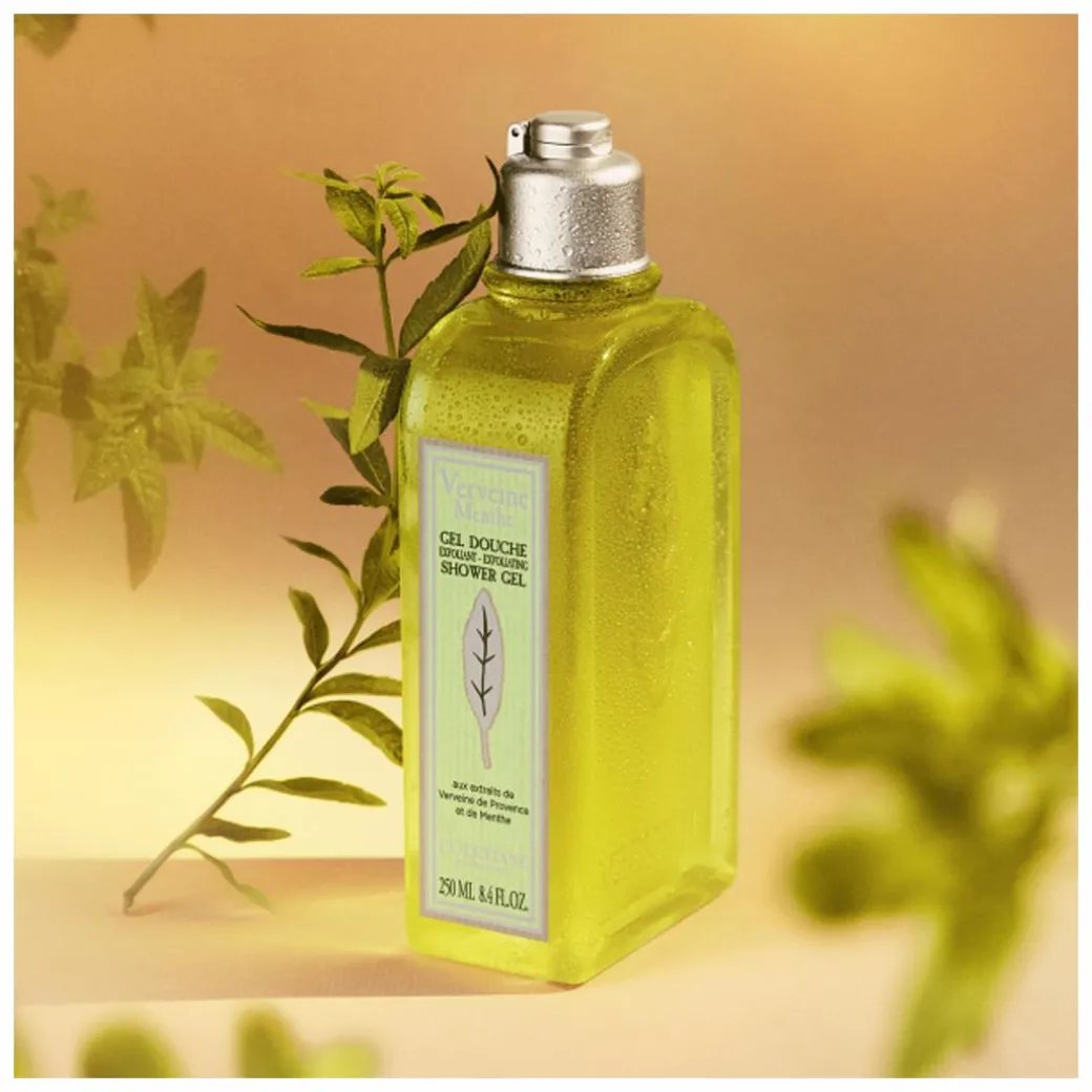 Scrub your body with the Exfoliating Shower Gel once or twice a week on the days in between use the fan-favourite L’Occitane Verbena Shower Gel for a gentle exfoliating action. Apply the Mint Verbena Shower Gel to wet skin by massaging it into a lather before rinsing off with water.