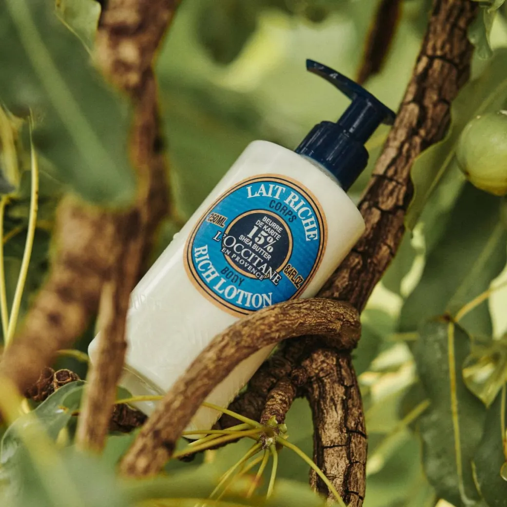Formulated with a concentrated dose of 15% shea butter, the L’Occitane Rich Body Lotion instantly brings conditioning comfort to dry skin. Renowned for its nourishing abilities, this anti-inflammatory ingredient creates a smooth and soft barrier that will calm and hydrate the skin, wrapping the body in a luxuriously rich and softening veil.