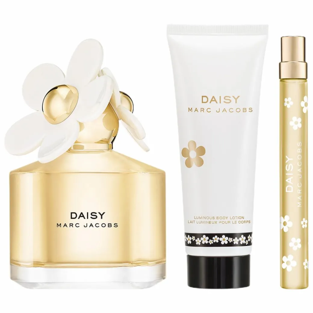 GIFT THE RE[MARC]ABLE. This Marc Jacobs Daisy Gift Set includes everything she needs to feel special: her favourite floral fragrance and matching body lotion, plus a handy, pocket-sized 10ml Travel Spray for an irresistible scent on the go. Festive gifts don’t get much more perfect than this.