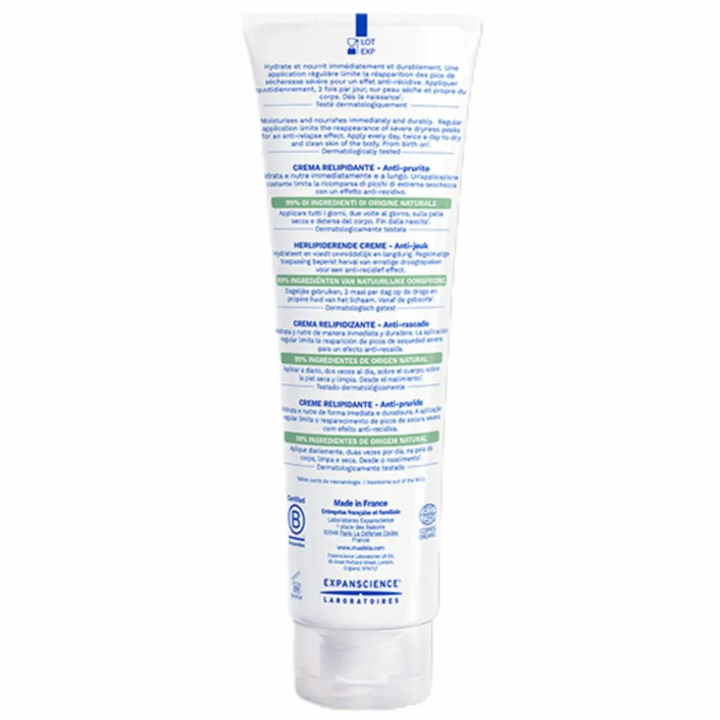Stelatopia+ is a certified organic cream designed to soothe atopic skin, providing peace of mind for parents. This lipid-replenishing, anti-itching cream is specifically formulated for extremely dry and eczema-prone skin in babies from birth*, as well as for the entire family. Made with 99% natural origin ingredients, it features a complex of patented active ingredients, including certified organic Sunflower Oil Distillate and prebiotic Bioecolia ®. These ingredients work together to immediately reduce redness and have an anti-relapse effect, minimising the frequency of severe dryness peaks.