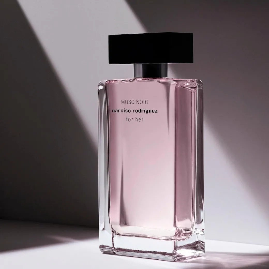 The bottle stands out too – for the very first time, the iconic For Her bottle is laid bare. Abandoning Narciso Rodriguez’ usual block colour style, the transparent glass flacon of Musc Noir reveals the delicate, pink-tinted liquid within and catches the light beautifully.