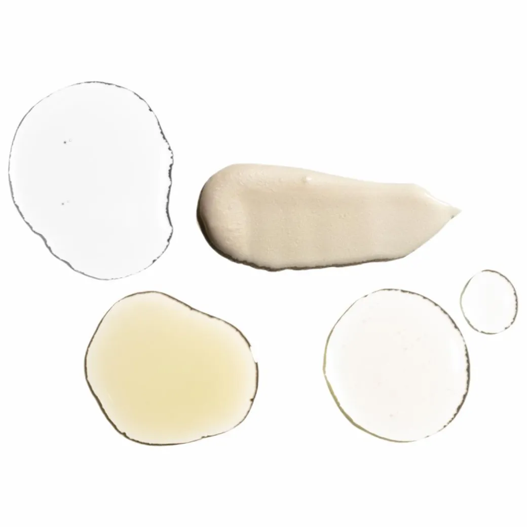 If you’re using all products in the gift set, apply the Fractionated Eye Contour Concentrate to the eye contour first. Apply the Multi-Molecular Hyaluronic Complex to freshly cleansed skin, before following with the Photography Fluid, Opacity 12% for photo-ready skin. Cleanse the face during the evening with the Low-Viscosity Cleaning Ester.