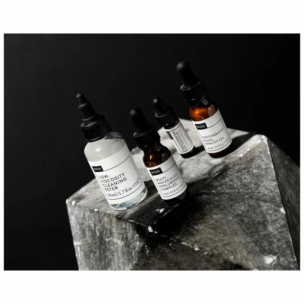 - NIOD Multi-Molecular Hyaluronic Complex 15ml: A second-generation, anti-ageing formula that combines 15 forms of hyaluronic compounds, to make skin look smooth, uniform and plump.