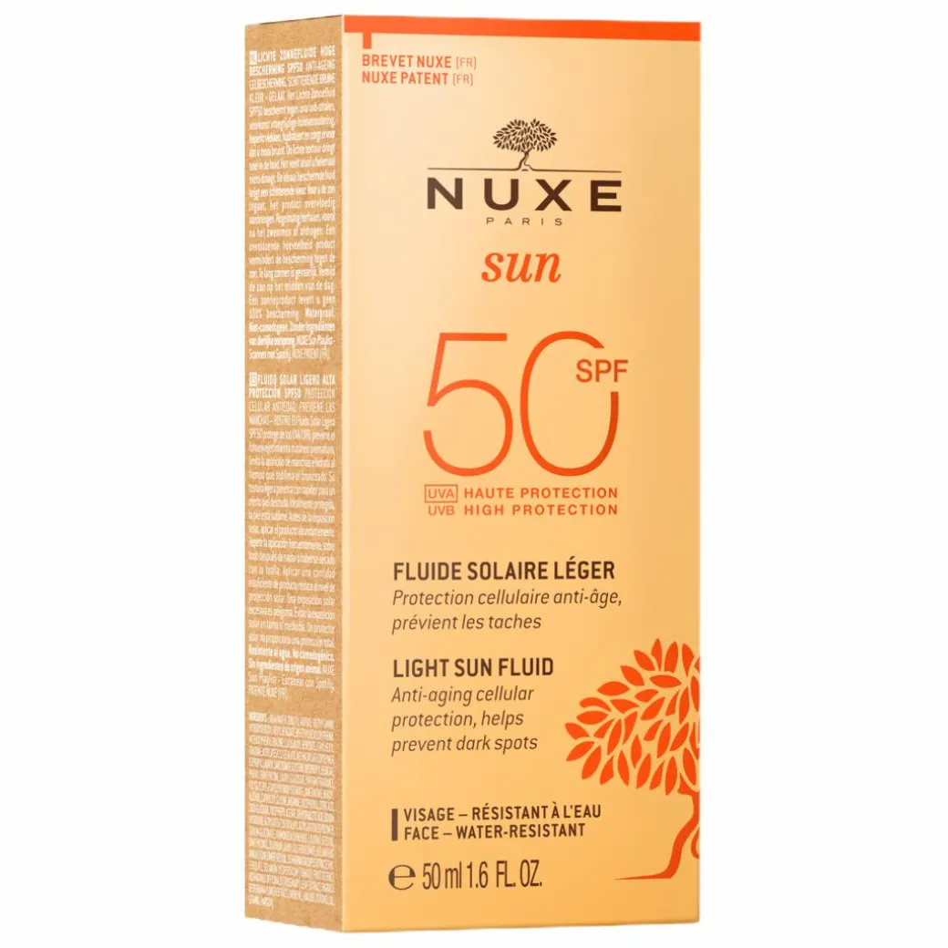 Protect your complexion against harmful UV rays, dehydration and ageing with the Nuxe Sun Light Fluid High Protection, a facial sunscreen for normal to combination skin that offers SPF 50, broad-spectrum defence.