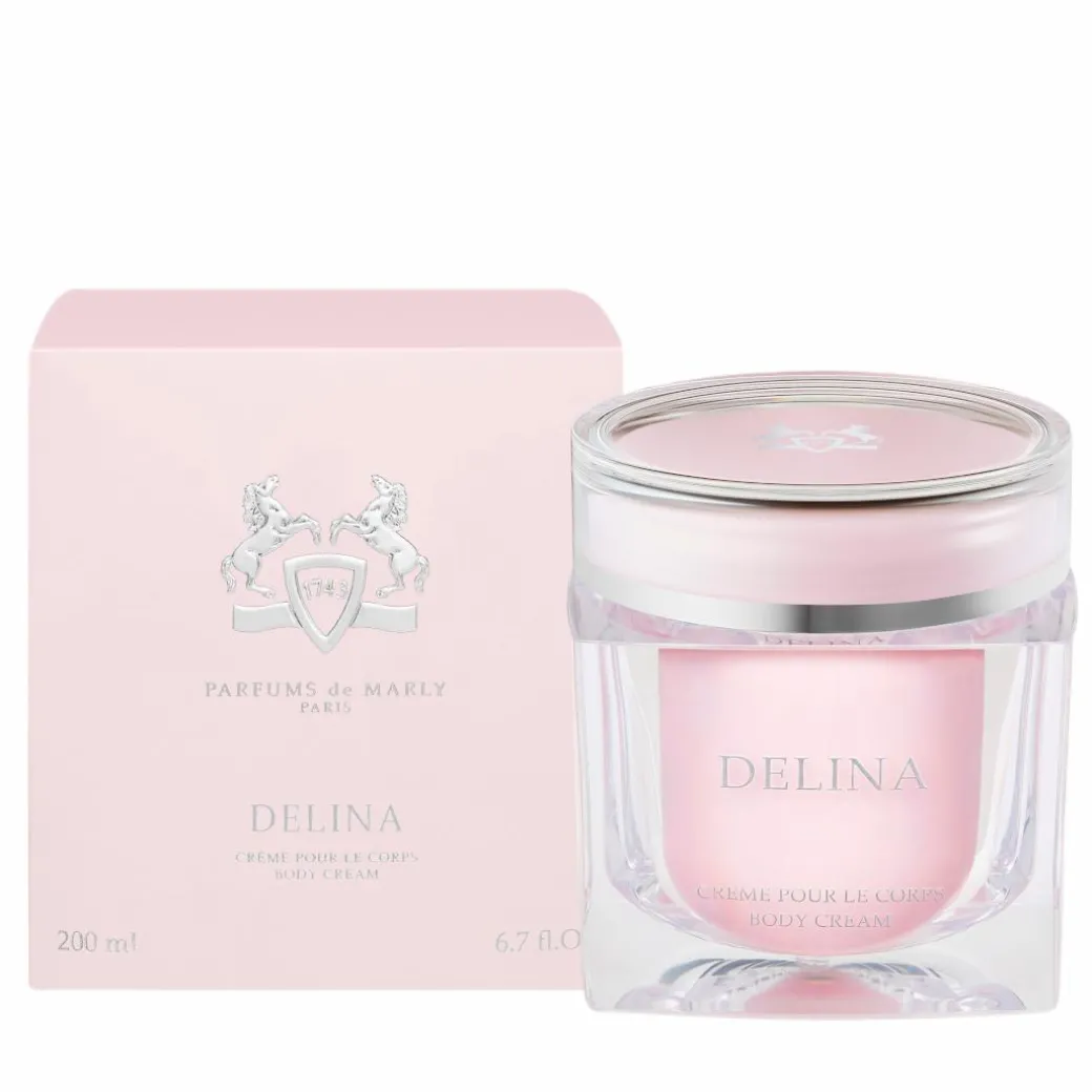 Indulge every sense with the Parfums de Marly Delina Body Cream, a luxurious fragranced body moisturiser for women, which envelops you in the rose-inspired aroma of Delina Eau de Parfum.