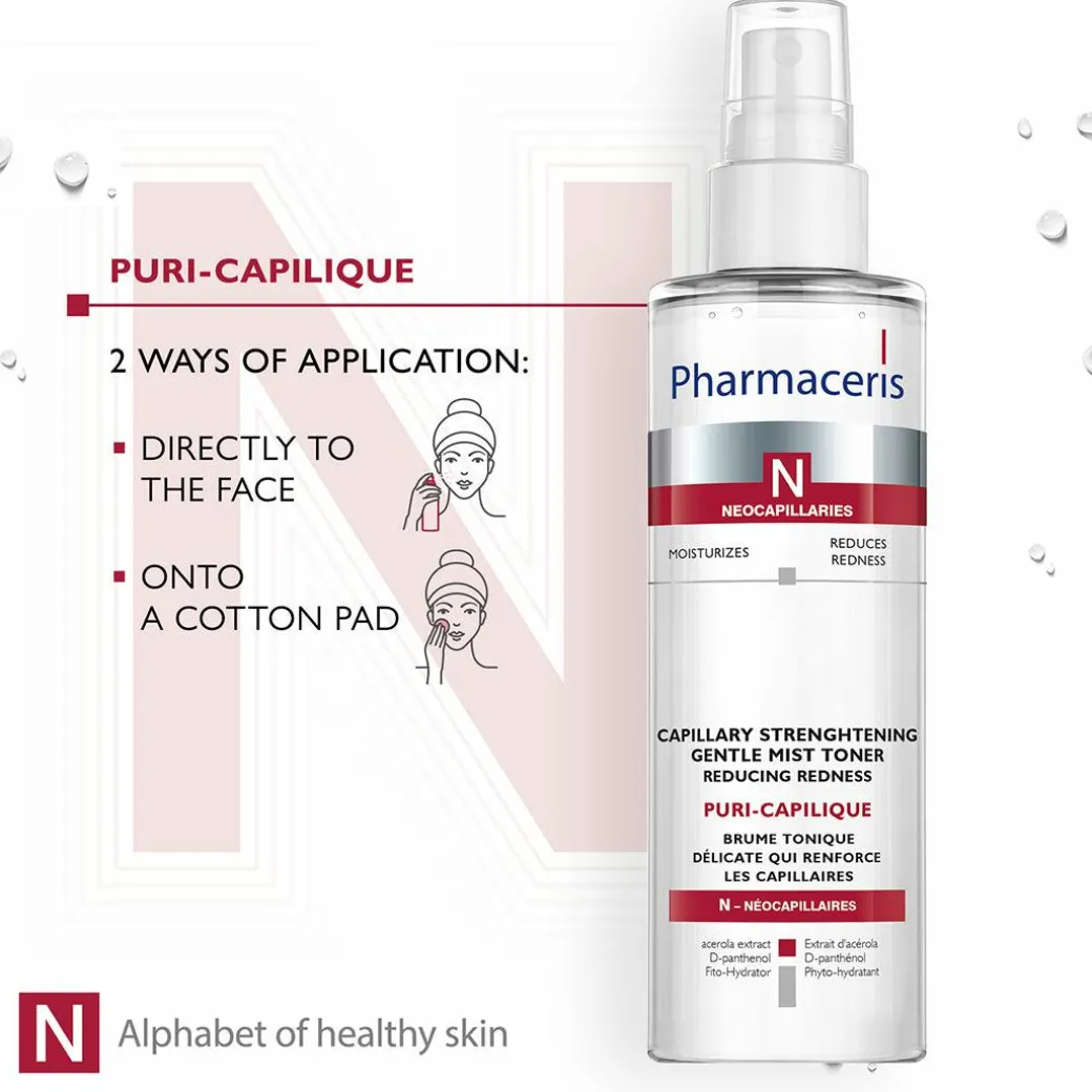 The toner restores the skin’s natural pH level and effectively removes impurities and make-up.Acerola extract and Glucam ensure proper skin hydration, soothe irritations and prevent new redness.