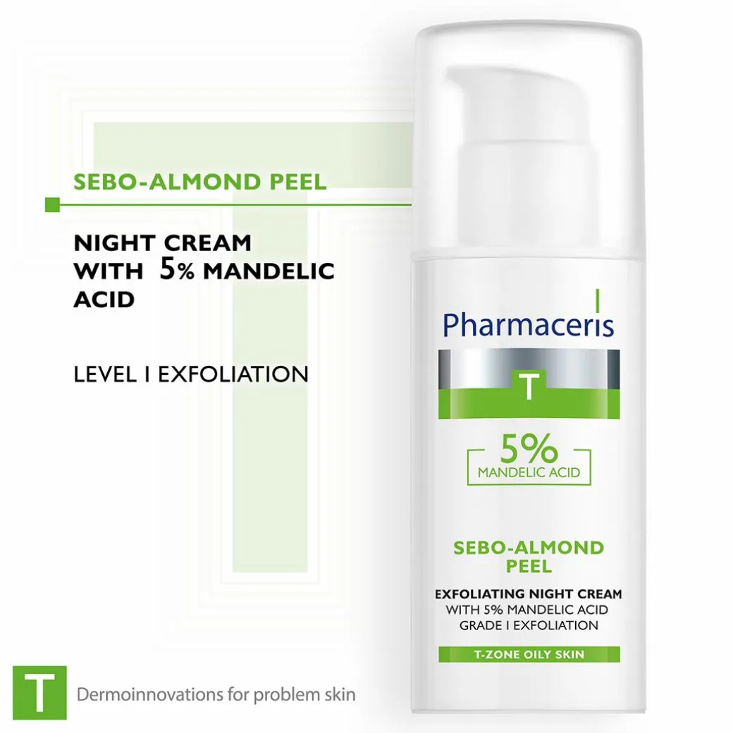 Designed to offer anti-acne properties and regulate sebum secretion, the Pharmaceris T Sebo-Almond Peel Night Cream works to eliminate existing acne lesions and reduce the formation of new imperfections.