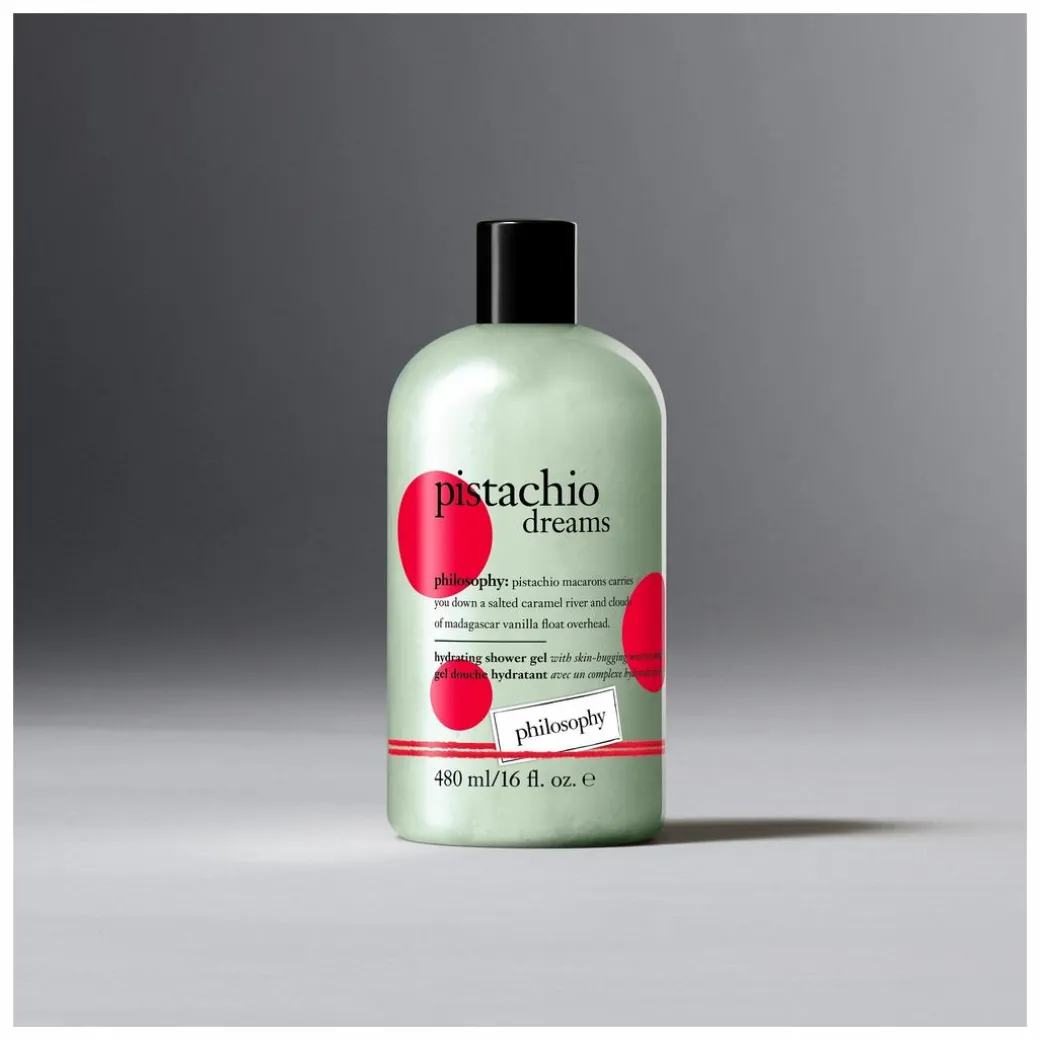 Giftable cheer comes once a year. ‘Tis the season for sharing the Philosophy limited-edition 480ml Pistachio Dreams Hydrating Shower Gel. Let the joyful body care begin as sweet pistachio macarons carry you down a salted caramel river and clouds of Madagascan vanilla float over this wonderland.