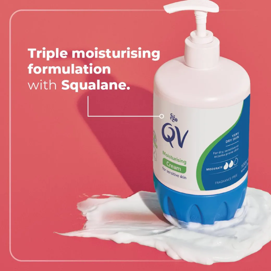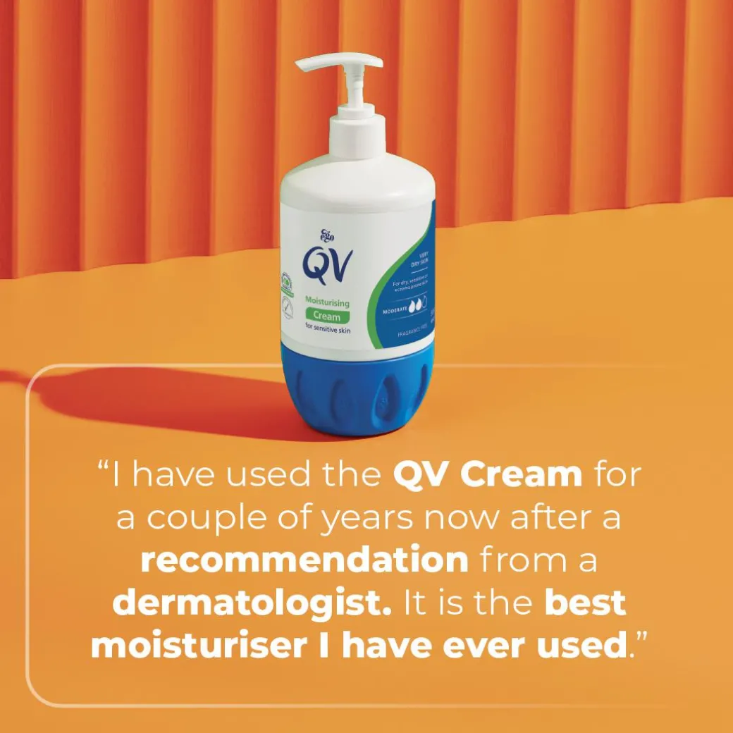 The fragrance-free QV Cream formula will instantly calm any irritated, itchy and red areas caused by dermatitis, eczema, psoriasis, xerosis and ichthyosis. Its non-greasy texture and highly concentrated creamy formula will intensely hydrate dry areas, including elbows and knees, for more flexible, soft and comfortable skin that feels intensely moisturised for up to 24 hours.