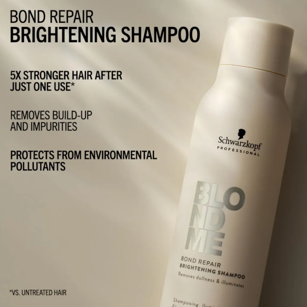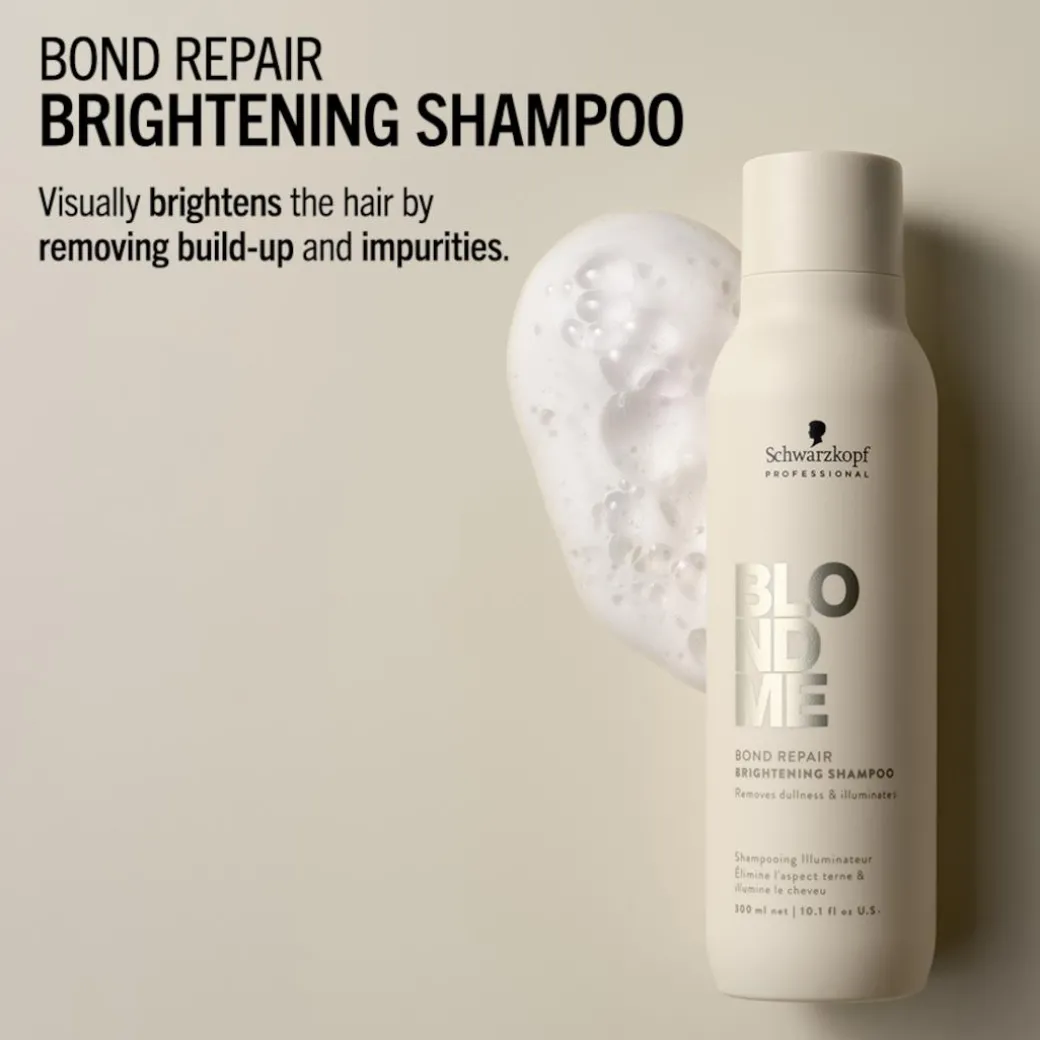 Cleansing and visually brightening blonde hair by removing build-up, impurities and environmental pollutants, BlondMe Bond Repair Brightening Shampoo with BOND REPAIR TECHNOLOGY helps to build inner hair bonds, repairing damage equivalent to two lightening services after just one use. The lightweight and moisturising formula, enriched with Almond Oil and White Tea, leaves the hair supple with a healthy-looking shine.
