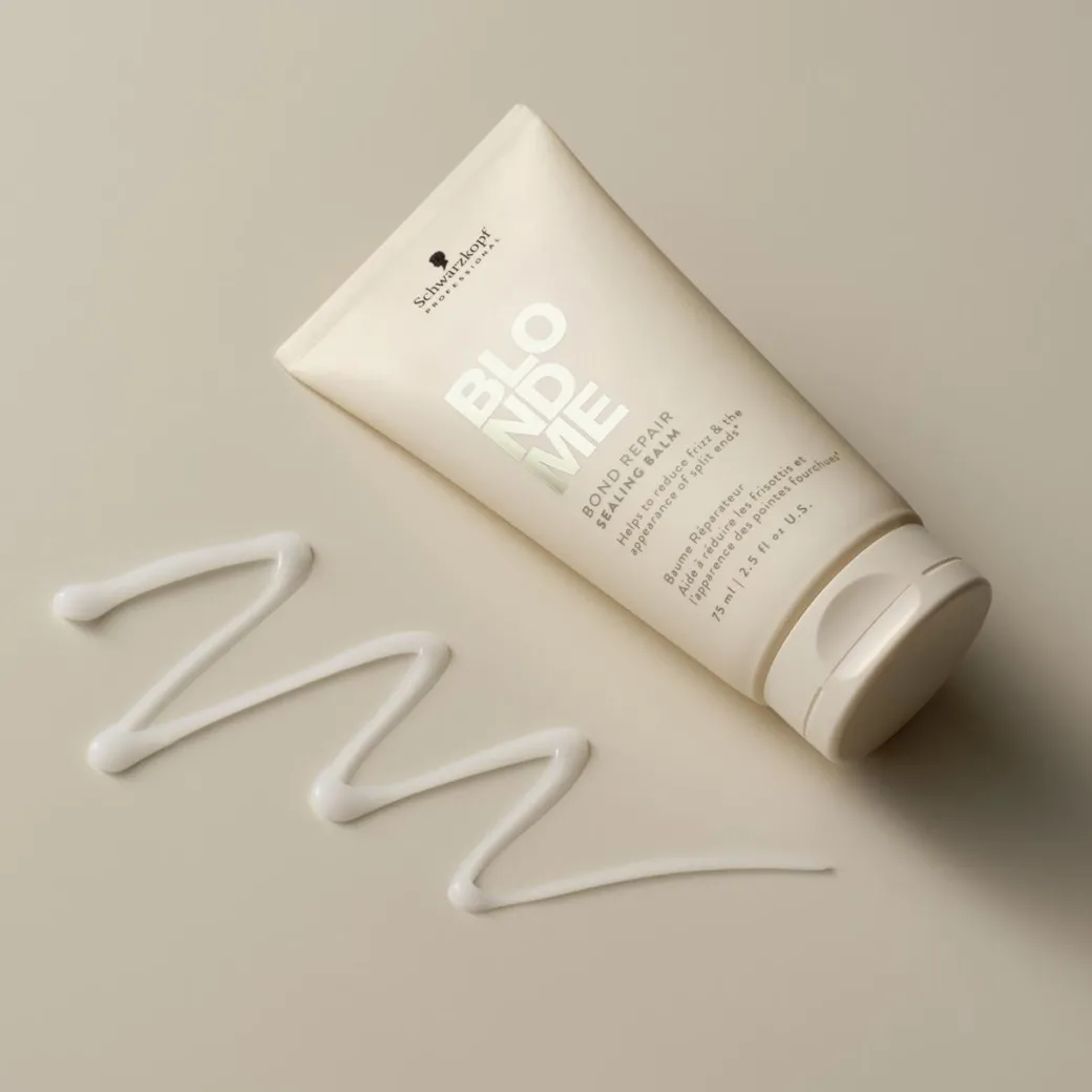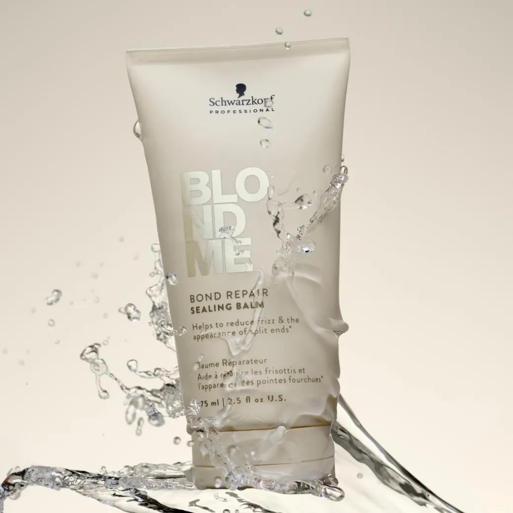 Sealing split ends, BlondMe Bond Repair Sealing Balm with BOND REPAIR TECHNOLOGY helps to reduce frizz and smooth the hair, leaving it soft and shiny. Providing up to 230°C/450°F heat protection, it strengthens the hair by building inner hair bonds, repairing damage equivalent to two lightening services after just one use.