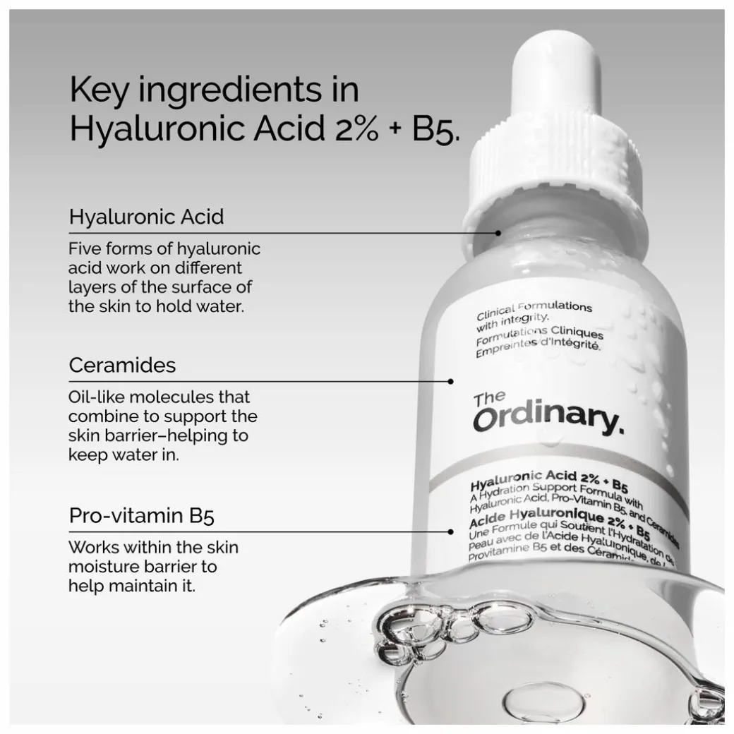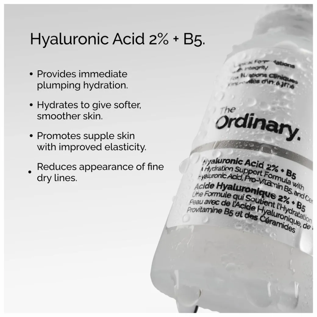 Hyaluronic Acid 2% + B5 provides instant plumping hydration to give softer, smoother, healthy-looking skin. The lightweight formula replenishes skin’s hydration levels with all-day results, and helps the skin retain moisture to replump dry, dehydrated skin. Hyaluronic Acid 2% + B5 also promotes skin suppleness and elasticity, while minimising the appearance of fine dry lines.
