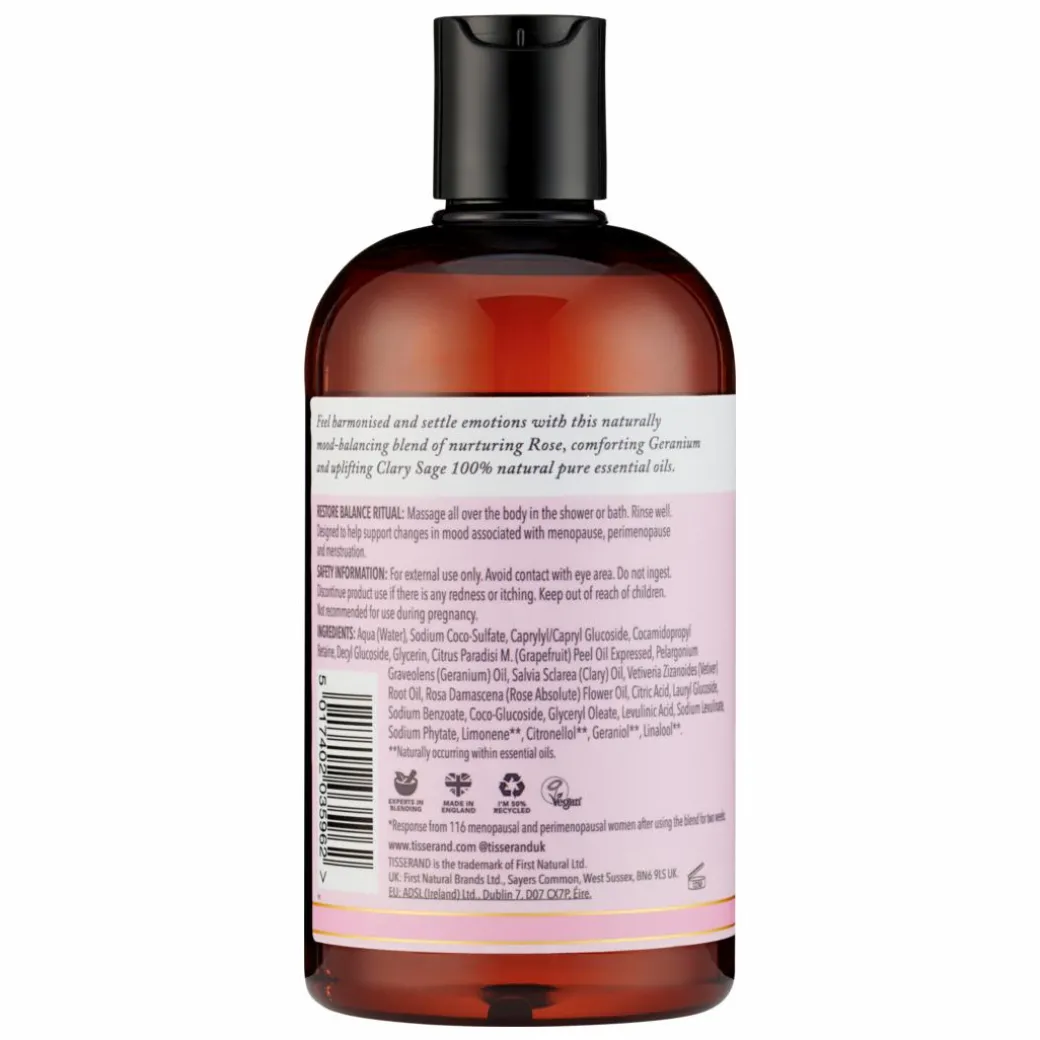 The Restore Balance body wash features the same zesty rose scent as the rest of the Restore Balance range. The aroma is created by Tisserand’s expert blend of essential oils, which have been selected for their ability to boost oestrogen and calm unbalanced emotions during menopause and perimenopause. The hero oils are rosa damascena, which encourages self-love, pelargonium graveolens to ease anxiety and mood swings, as well as clary sage to minimise tiredness associated with hormonal changes.