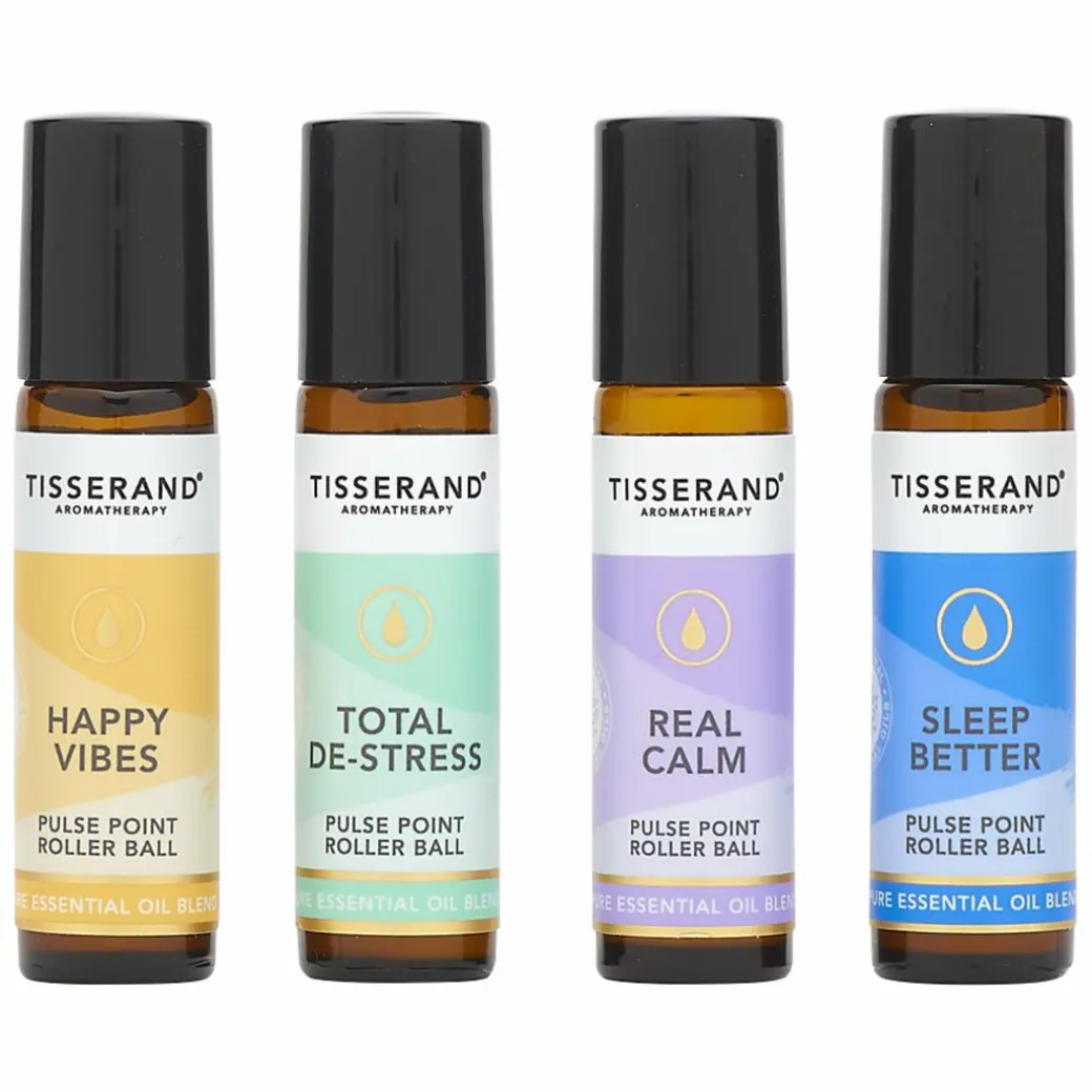 - Tisserand Aromatherapy Total De-Stress Pulse Point Roller Ball 10ml: Blending geranium, orange and nutmeg, this comforting roller ball invites you to slow down and relax.