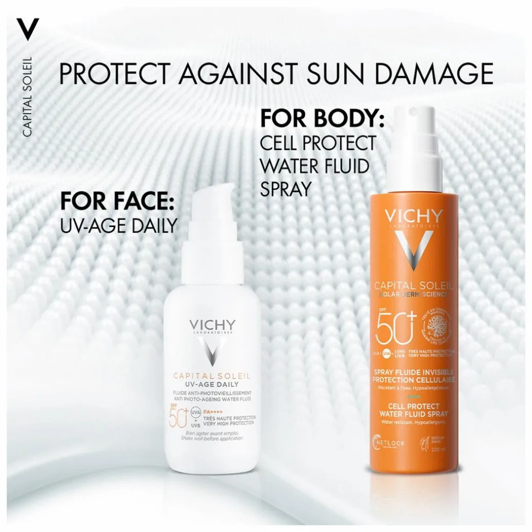 With solar Dermatological Science, Capital Soleil Cell Protect Spray is an ultra lightweight, invisible finish water fluid spray for face and body, suitable for all skin types.