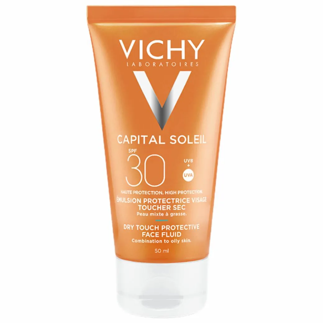 Protect your combination to oily skin with the Vichy Ideal Soleil Mattifying Face Fluid Dry Touch SPF30.