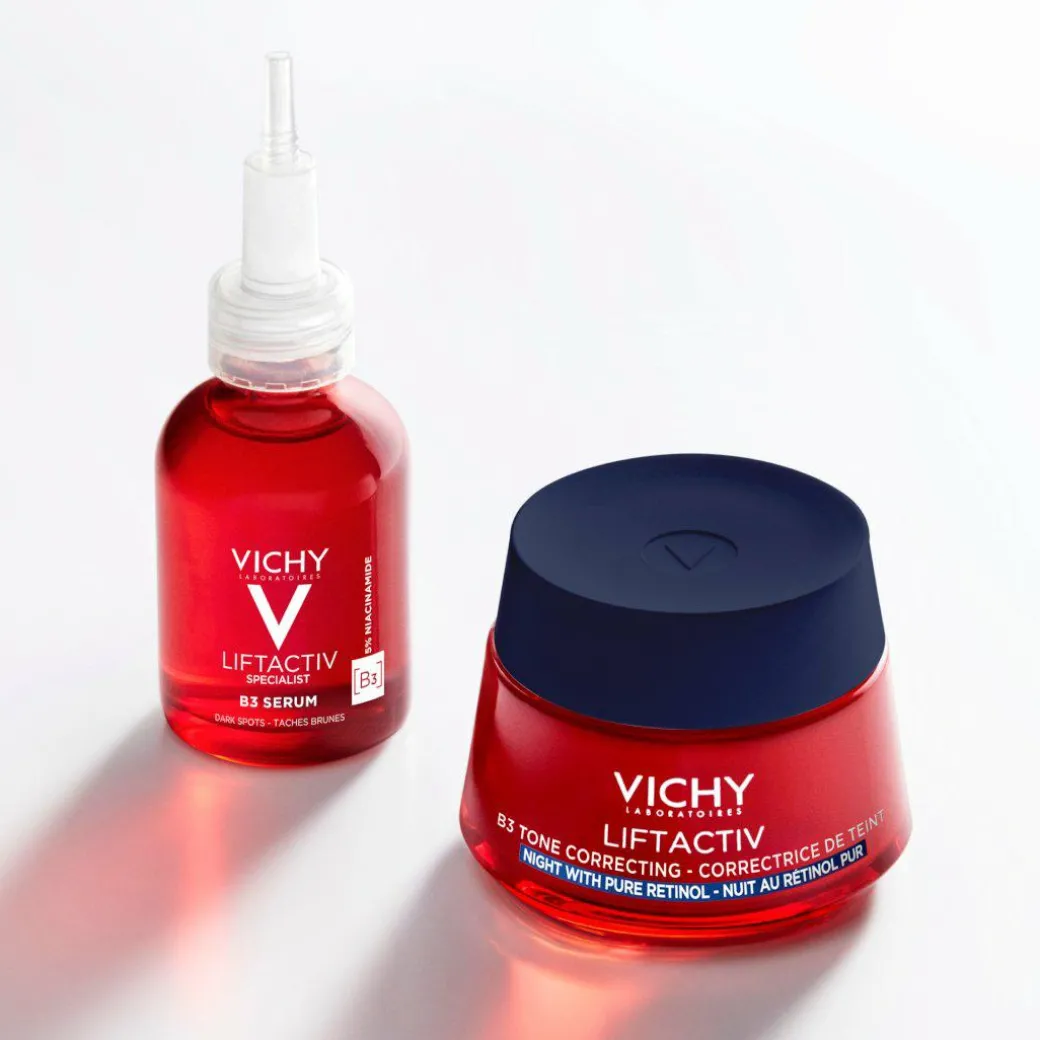 Introducing the NEW Vichy Liftactiv B3 Tone Correcting Night Cream with Pure Retinol, for a more even skin tone and radiant skin.