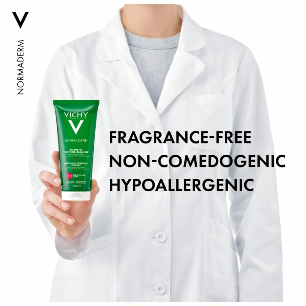 Cleanse and care for blemish prone skin with the Vichy Normaderm Intensive Purifying Cleanser Gel, a daily face cleanser formulated for oily and congested skin suitable for all skin types, including sensitive.
