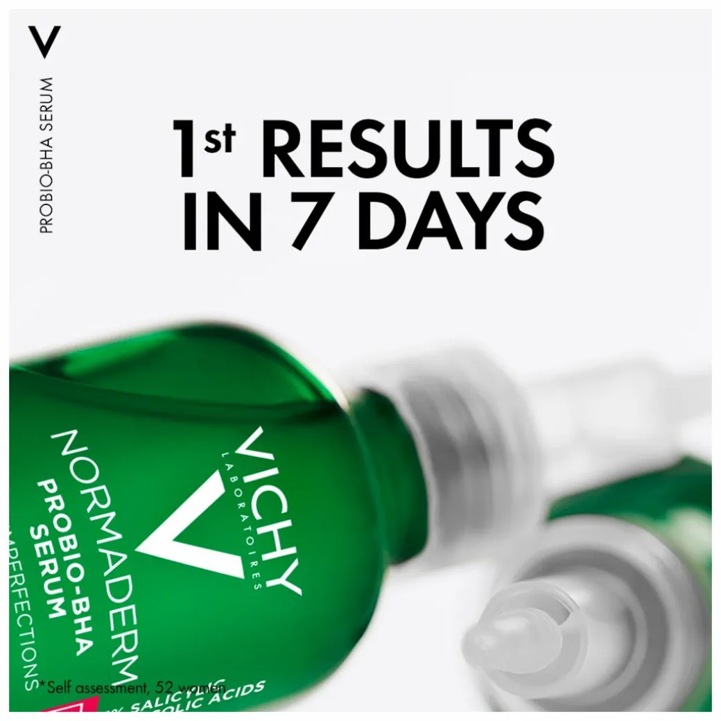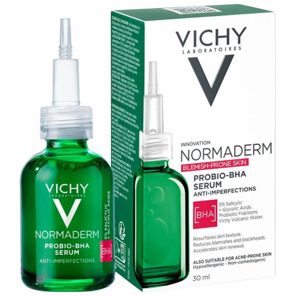 Part of the best-selling Normaderm skincare collection for those aged 20-30s suffering from oily, acne-prone skin. Vichy’s Probio-BHA serum combines a powerful synergy of ingredients for a three-pronged approach; an innovative balance of 5% salicylic acid and glycolic acids work to correct existing acne marks, target breakouts and smooth the skin’s texture. All while 5% probiotic fractions strengthen the skin barrier and promote cell renewal for a healthy, radiant complexion. The probiotics and AHA/BHA’s are gentle enough for even sensitive skin and is perfect for anyone with reactive and oily skin.
