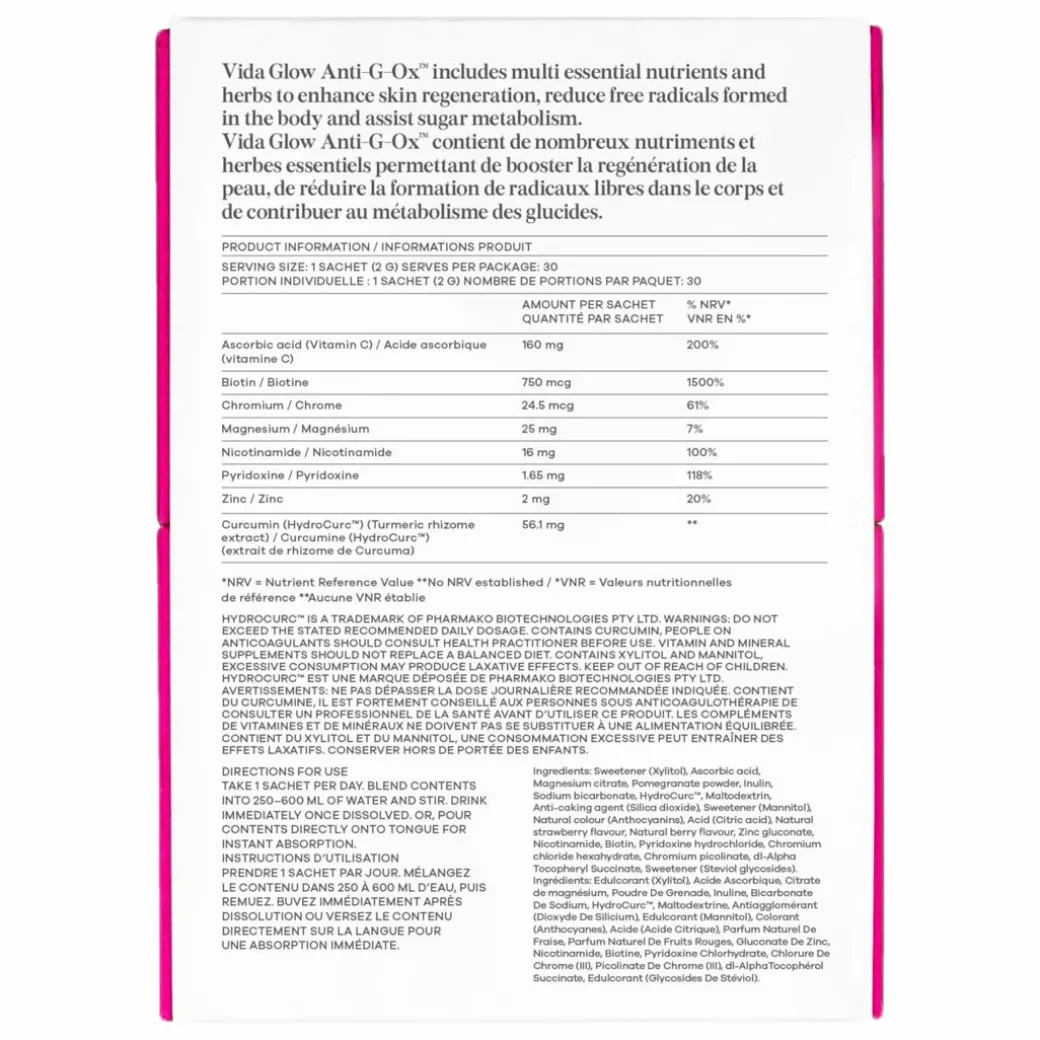 “Defend your skin from the three main causes of premature ageing with the award-winning Vida Glow Daily Essentials Anti-G-Ox Berry, an effervescent supplement formed from 10 active ingredients.” – Darcey, Escentual Beauty Team.