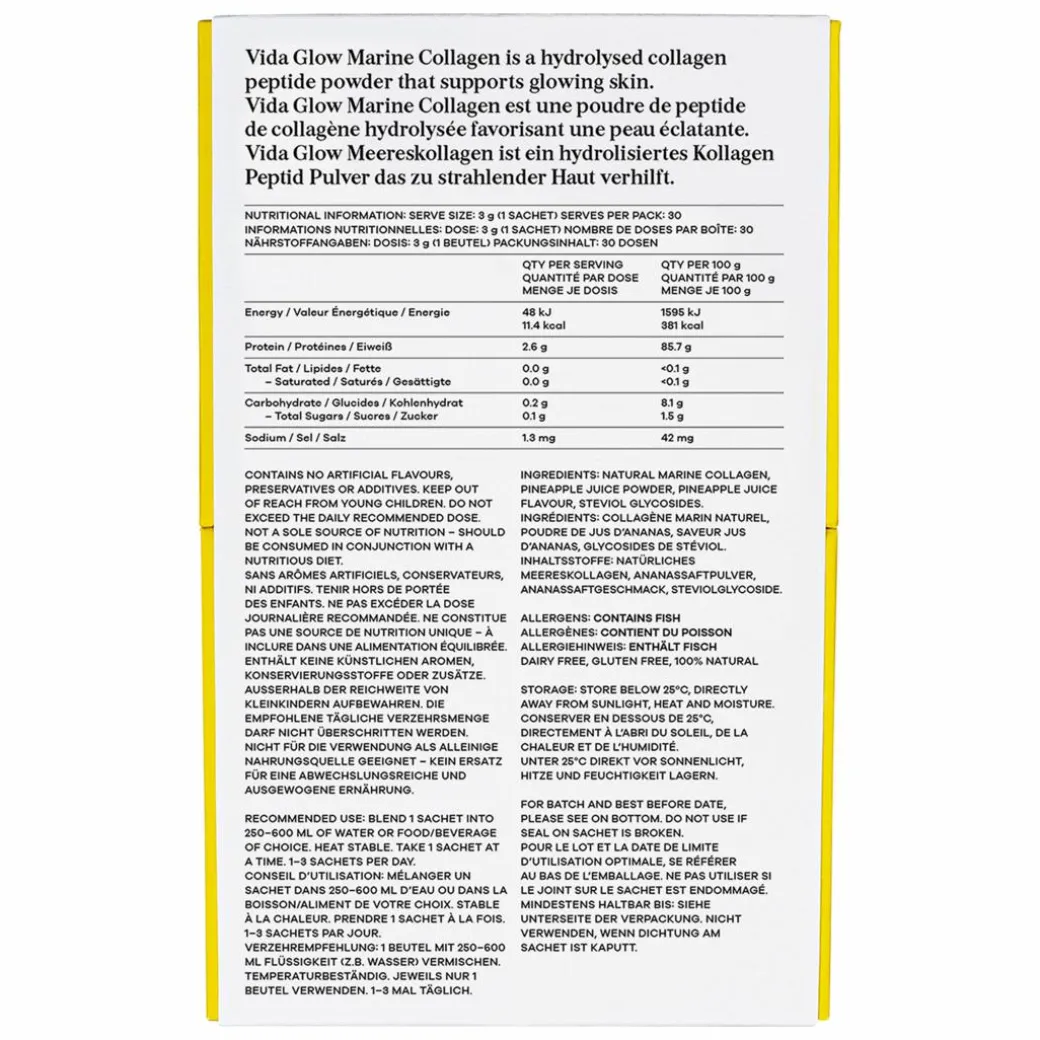 If you’re looking to try marine collagen for the first time, why not start your journey to healthy, glowing skin, with the ‘World’s No.1 Marine Collagen Brand’: Vida Glow. Their Natural Marine Collagen Sachets keep it simple with a minimal complex of marine collagen, real pineapple and natural sweetener for optimal potency and subtly sweet flavour.