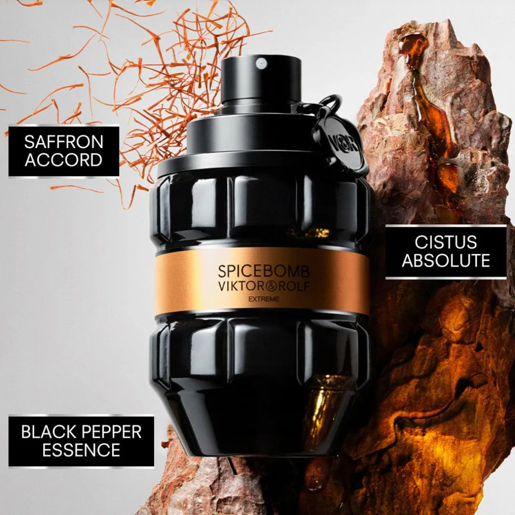 Experience the intensified pleasure of the Viktor & Rolf Spicebomb Extreme Eau de Parfum Spray, an aromatic explosion of warmth and sensuality for him.