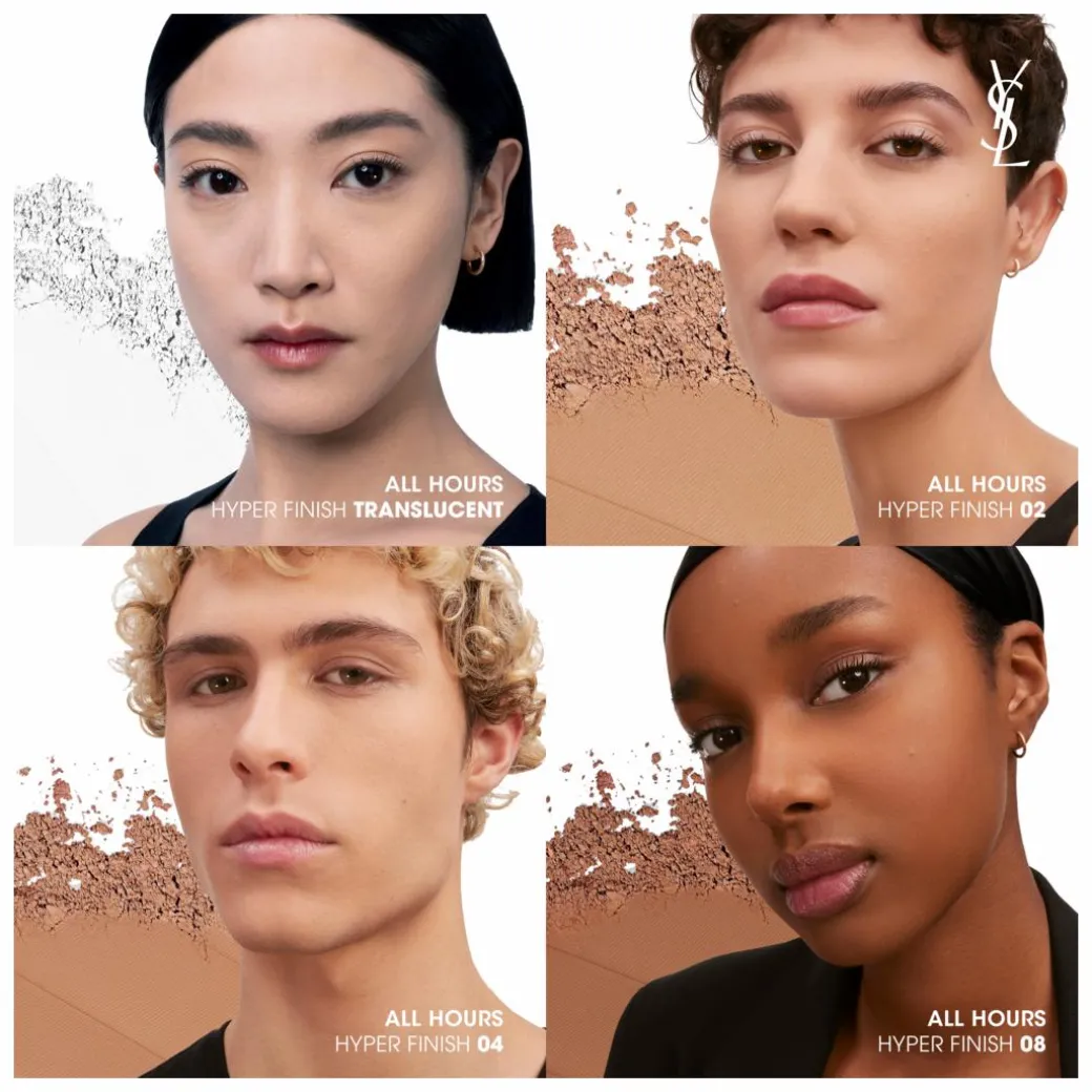 Infused with skincare actives and consisting of 90% natural-origin ingredients, All Hours Hyper Finish blurs imperfections and minimises appearance of pores, while smoothing skin. With Hyaluronic Acid, Niacinamide and Limetta from our YSL Beauty Ourika Community Garden, this formula leaves skin feeling comfortable and smooth, without drying out the skin. Fully blendable and breathable thanks to its finely milled texture, Hyper Finish ensures a seamless application, whether it is layered onto foundation as a setting powder, or glided onto skin as a powder foundation itself.