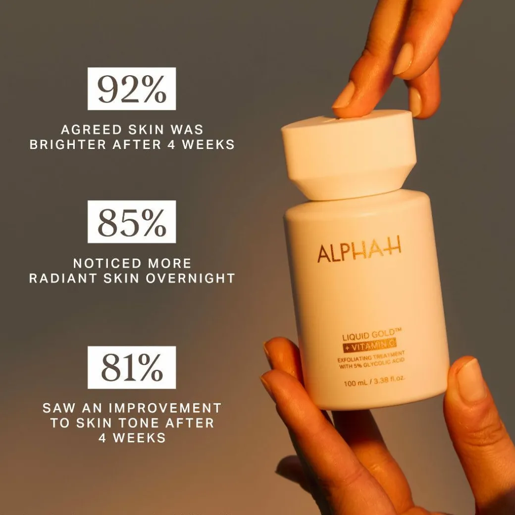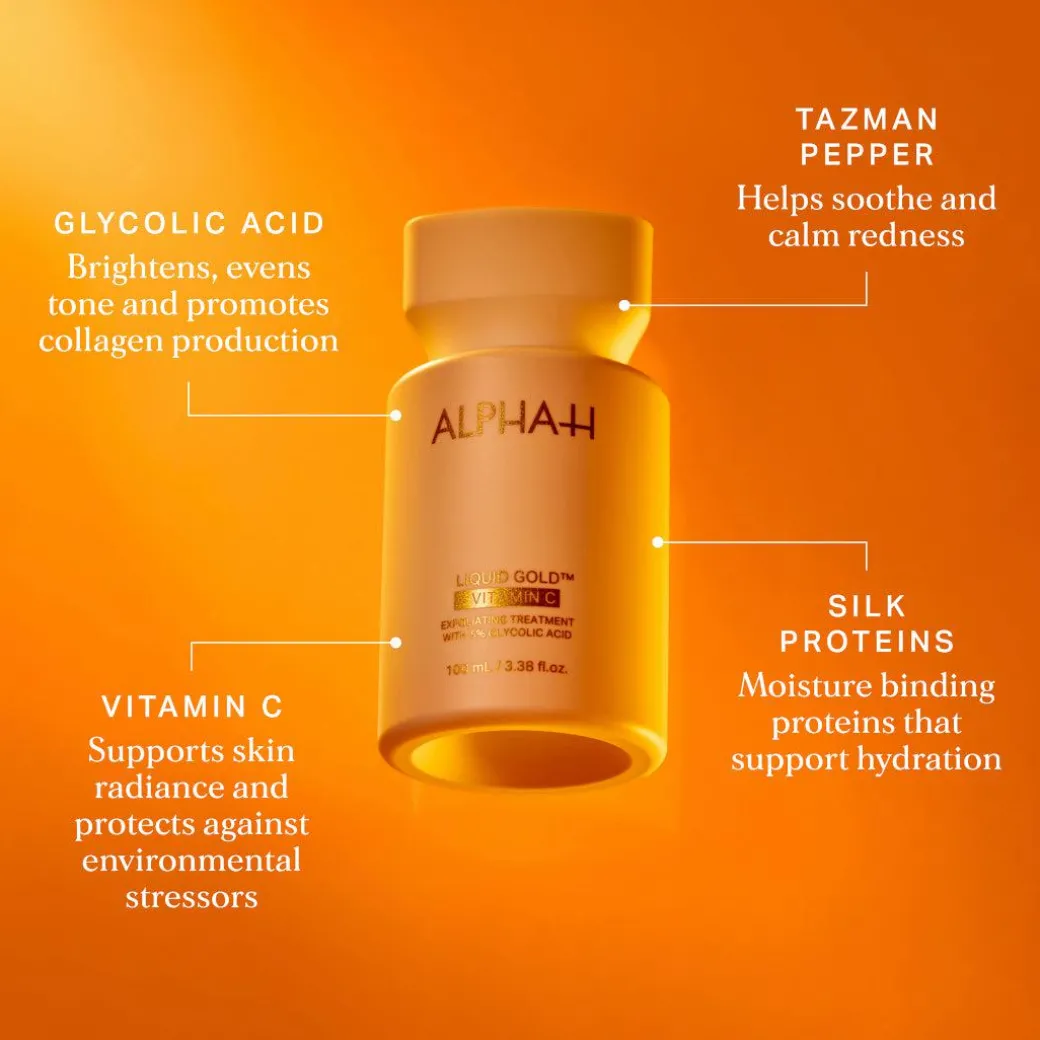 What does it do?Liquid Gold Exfoliating Treatment with Vitamin C is a powerhouse duo that harnesses the exfoliating power of 5% Glycolic Acid and brightening effects of Vitamin C, enhanced by its unique low-pH delivery system and stabilised formulation.
