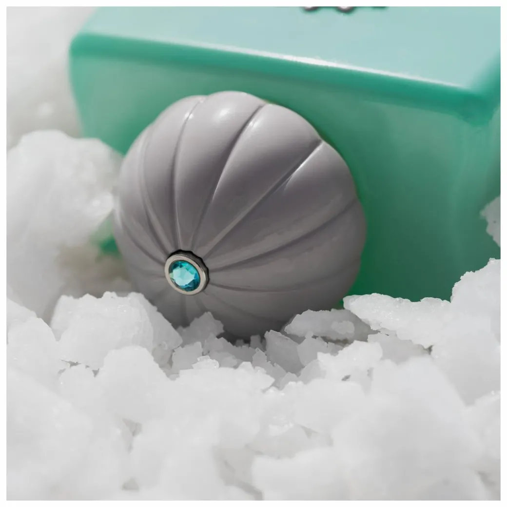 - A teal ceramic bottle topped with a magnetised lid.