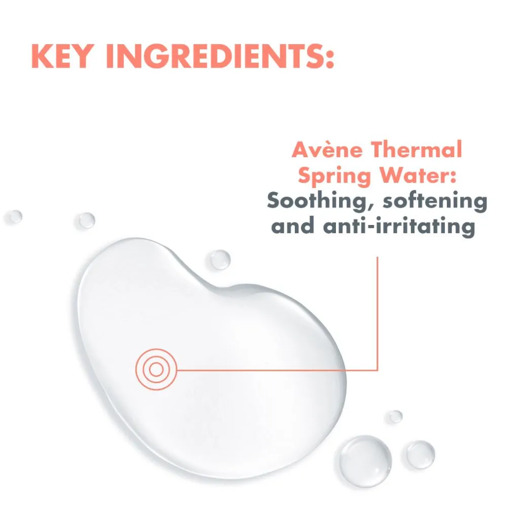 Avene Thermal Spring Water (Avene Aqua), Glycerin, Pentylene Glycol, Citric Acid, Coco-Glucoside, Fragrance (Parfum), Pca, Polyglyceryl-4 Caprate, Polyglyceryl-6 Caprylate, Sodium Benzoate, Water (Aqua)