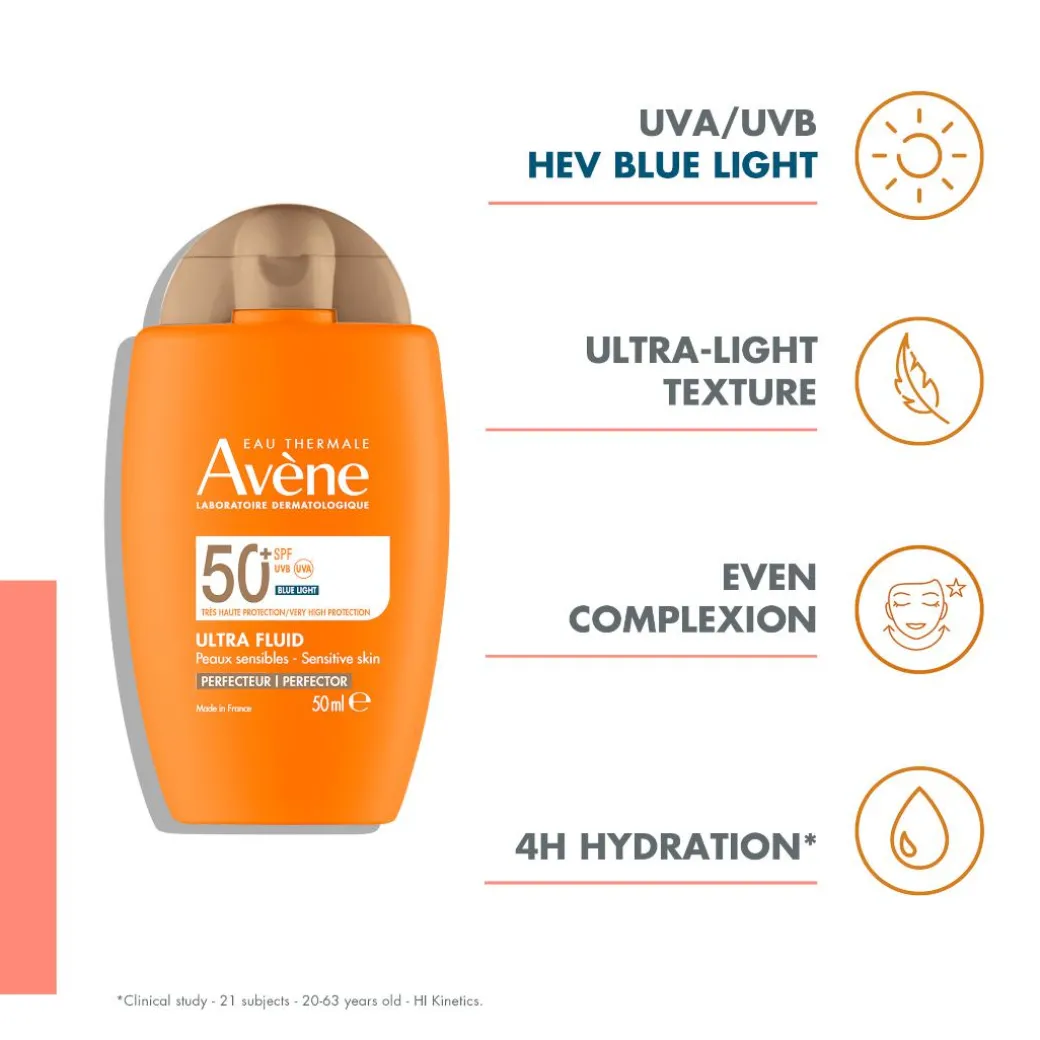Ultra Fluid Perfector SPF50+ offers high daily protection against UVB, UVA and HEV blue light to prevent skin photoageing.