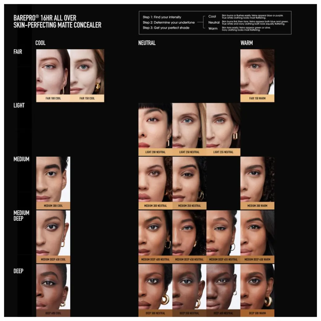 Bare it all with our BarePro 16HR Wear All Over Skin-Perfecting Matte Concealer with mineral SPF 25+++ that covers, protects, and corrects skin over time, providing a resilient matte finish. Our formula is supercharged by active levels of skin-loving niacinamide and mineral pigments for ultra-comfortable, long-lasting coverage. Sweat, heat, humidity, water, transfer, smudge resistant.* Ideal for all skin types, even the most sensitive.
