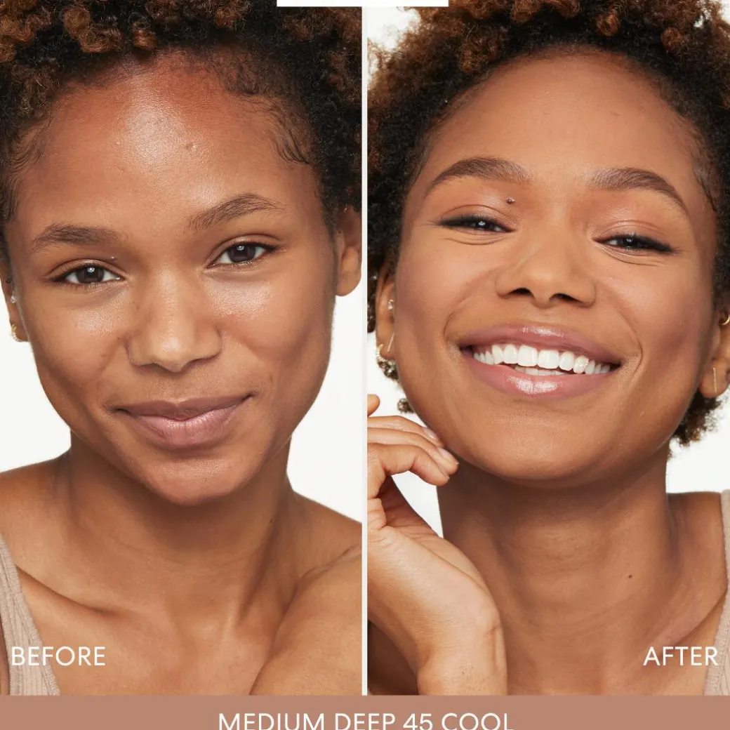 Medium Deep 45 Cool: Synthetic Fluorphlogopite, Mica, Zinc Stearate, Silica, Calcium Carbonate, Diphenyl Dimethicone/Vinyl Diphenyl Dimethicone/Silsesquioxane Crosspolymer, Caprylic/Capric Triglyceride, Magnesium Myristate, Dimethicone, Sorbitan Sesquiisostearate, Helianthus Annuus (Sunflower) Seed Oil, Squalane, Butyrospermum Parkii (Shea) Butter, Ananas Sativus (Pineapple) Fruit Extract, Theobroma Cacao (Cocoa) Seed Butter, Glycyrrhiza Glabra (Licorice) Root Juice, Paeonia Albiflora Root Extract, Ethylhexylglycerin, Sorbic Acid, Methicone, Aluminum Hydroxide, Triethoxycaprylylsilane, Hydrogen Dimethicone, Tocopherol, Tetrahexyldecyl Ascorbate, Tocopheryl Acetate, Citric Acid. +/- (May Contain/Peut Contenir) Titanium Dioxide (Ci 77891), Iron Oxides (Ci 77491, Ci 77492, Ci 77499).