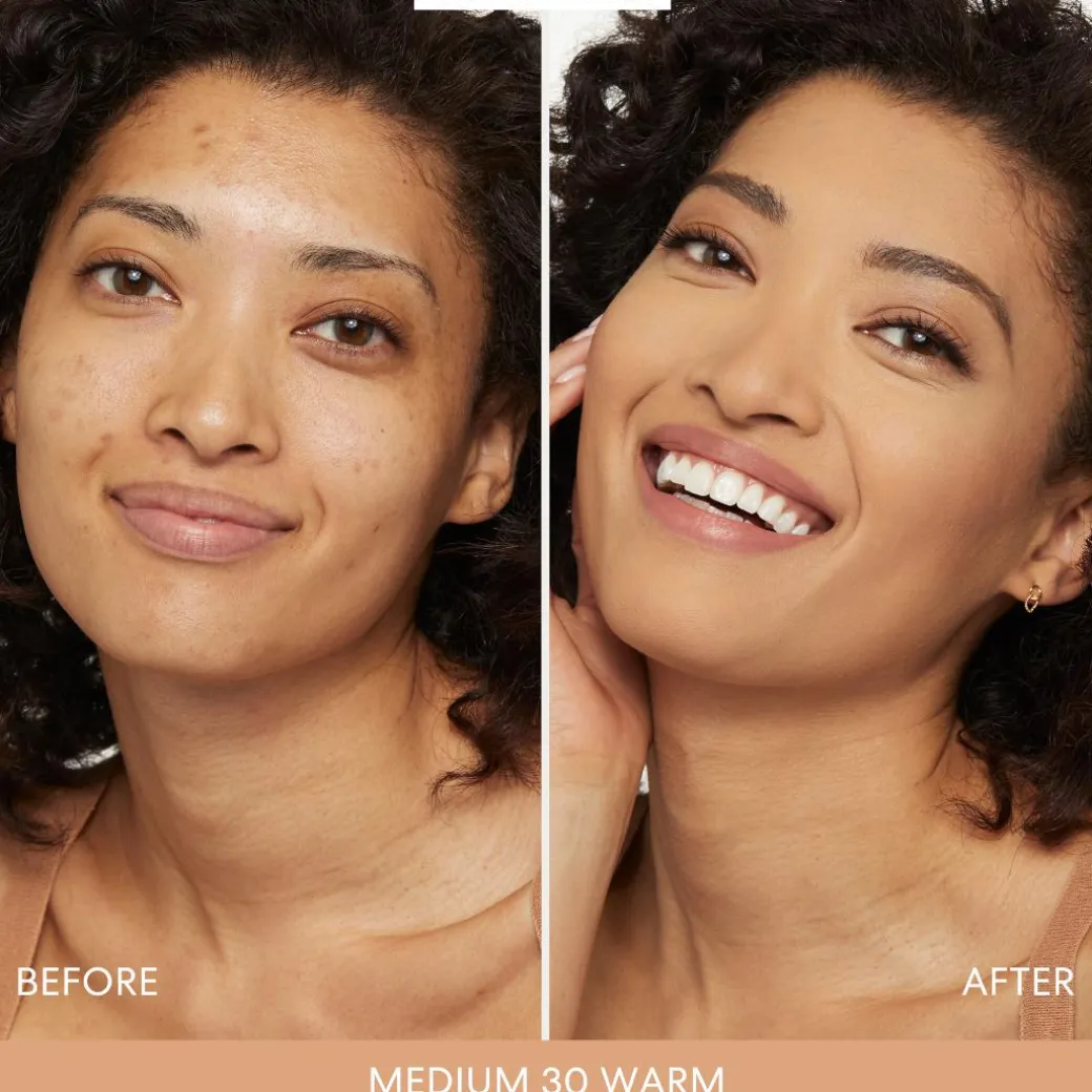 Medium 30 Warm: Synthetic Fluorphlogopite, Mica, Zinc Stearate, Silica, Calcium Carbonate, Diphenyl Dimethicone/Vinyl Diphenyl Dimethicone/Silsesquioxane Crosspolymer, Caprylic/Capric Triglyceride, Magnesium Myristate, Dimethicone, Sorbitan Sesquiisostearate, Helianthus Annuus (Sunflower) Seed Oil, Squalane, Butyrospermum Parkii (Shea) Butter, Ananas Sativus (Pineapple) Fruit Extract, Theobroma Cacao (Cocoa) Seed Butter, Glycyrrhiza Glabra (Licorice) Root Juice, Paeonia Albiflora Root Extract, Ethylhexylglycerin, Sorbic Acid, Methicone, Aluminum Hydroxide, Triethoxycaprylylsilane, Hydrogen Dimethicone, Tocopherol, Tetrahexyldecyl Ascorbate, Tocopheryl Acetate, Citric Acid. +/- (May Contain/Peut Contenir) Titanium Dioxide (Ci 77891), Iron Oxides (Ci 77491, Ci 77492, Ci 77499).