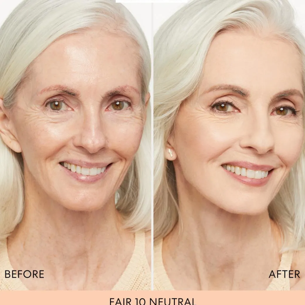 Fair 10 Neutral: Synthetic Fluorphlogopite, Mica, Zinc Stearate, Silica, Calcium Carbonate, Diphenyl Dimethicone/Vinyl Diphenyl Dimethicone/Silsesquioxane Crosspolymer, Caprylic/Capric Triglyceride, Magnesium Myristate, Dimethicone, Sorbitan Sesquiisostearate, Helianthus Annuus (Sunflower) Seed Oil, Squalane, Butyrospermum Parkii (Shea) Butter, Ananas Sativus (Pineapple) Fruit Extract, Theobroma Cacao (Cocoa) Seed Butter, Glycyrrhiza Glabra (Licorice) Root Juice, Paeonia Albiflora Root Extract, Ethylhexylglycerin, Sorbic Acid, Methicone, Aluminum Hydroxide, Triethoxycaprylylsilane, Hydrogen Dimethicone, Tocopherol, Tetrahexyldecyl Ascorbate, Tocopheryl Acetate, Citric Acid. +/- (May Contain/Peut Contenir) Titanium Dioxide (Ci 77891), Iron Oxides (Ci 77491, Ci 77492, Ci 77499).