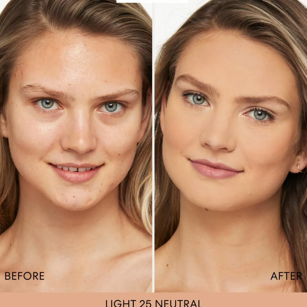 Light 25 Neutral: Synthetic Fluorphlogopite, Mica, Zinc Stearate, Silica, Calcium Carbonate, Diphenyl Dimethicone/Vinyl Diphenyl Dimethicone/Silsesquioxane Crosspolymer, Caprylic/Capric Triglyceride, Magnesium Myristate, Dimethicone, Sorbitan Sesquiisostearate, Helianthus Annuus (Sunflower) Seed Oil, Squalane, Butyrospermum Parkii (Shea) Butter, Ananas Sativus (Pineapple) Fruit Extract, Theobroma Cacao (Cocoa) Seed Butter, Glycyrrhiza Glabra (Licorice) Root Juice, Paeonia Albiflora Root Extract, Ethylhexylglycerin, Sorbic Acid, Methicone, Aluminum Hydroxide, Triethoxycaprylylsilane, Hydrogen Dimethicone, Tocopherol, Tetrahexyldecyl Ascorbate, Tocopheryl Acetate, Citric Acid. +/- (May Contain/Peut Contenir) Titanium Dioxide (Ci 77891), Iron Oxides (Ci 77491, Ci 77492, Ci 77499).