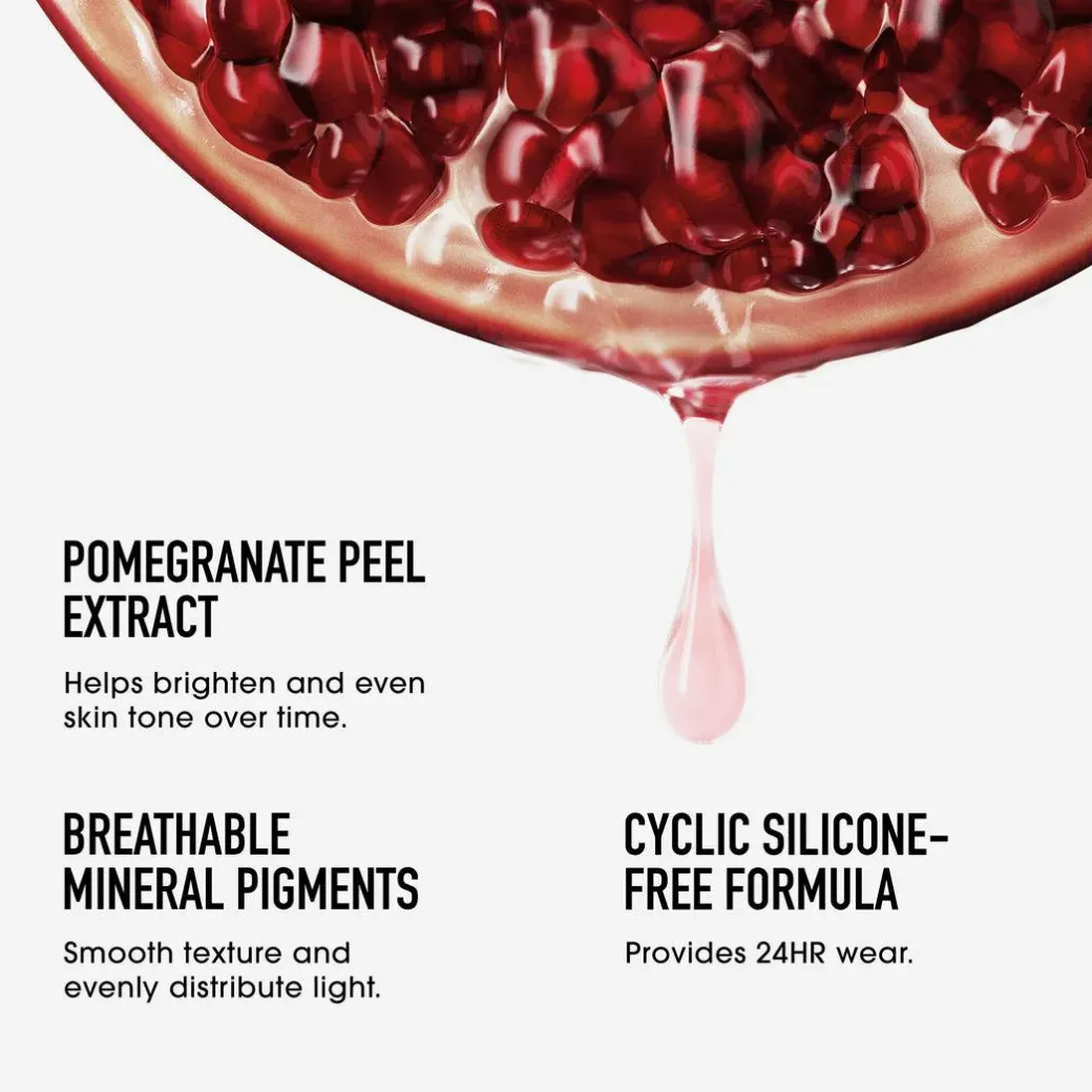 Water, Dimethicone, Trimethylsiloxysilicate, Caprylyl Methicone, Butylene Glycol, Isohexadecane, Caprylyl Dimethicone Ethoxy Glucoside, Methyl Trimethicone, Isododecane, Sorbitan Isostearate, Dimethicone/Vinyl Dimethicone Crosspolymer, Bis-Hydroxyethoxypropyl Dimethicone/Ipdi Copolymer Ethylcarbamate, Boron Nitride, Punica Granatum Pericarp Extract, Glycerin, Polysilicone-11, Phenoxyethanol, Sodium Chloride, Cellulose, Polyphenylsilsesquioxane, Silica, Triethoxycaprylylsilane, Alcohol, Di-C12-13 Alkyl Tartrate, Disteardimonium Hectorite, Potassium Sorbate, Sodium Dehydroacetate, Caprylic/Capric Triglyceride, Tocopheryl Acetate, Alumina, Lauryl Dimethicone, C20-24 Olefin. May Contain: Iron Oxides (Ci 77491, Ci 77492, Ci 77499), Titanium Dioxide (Ci 77891).