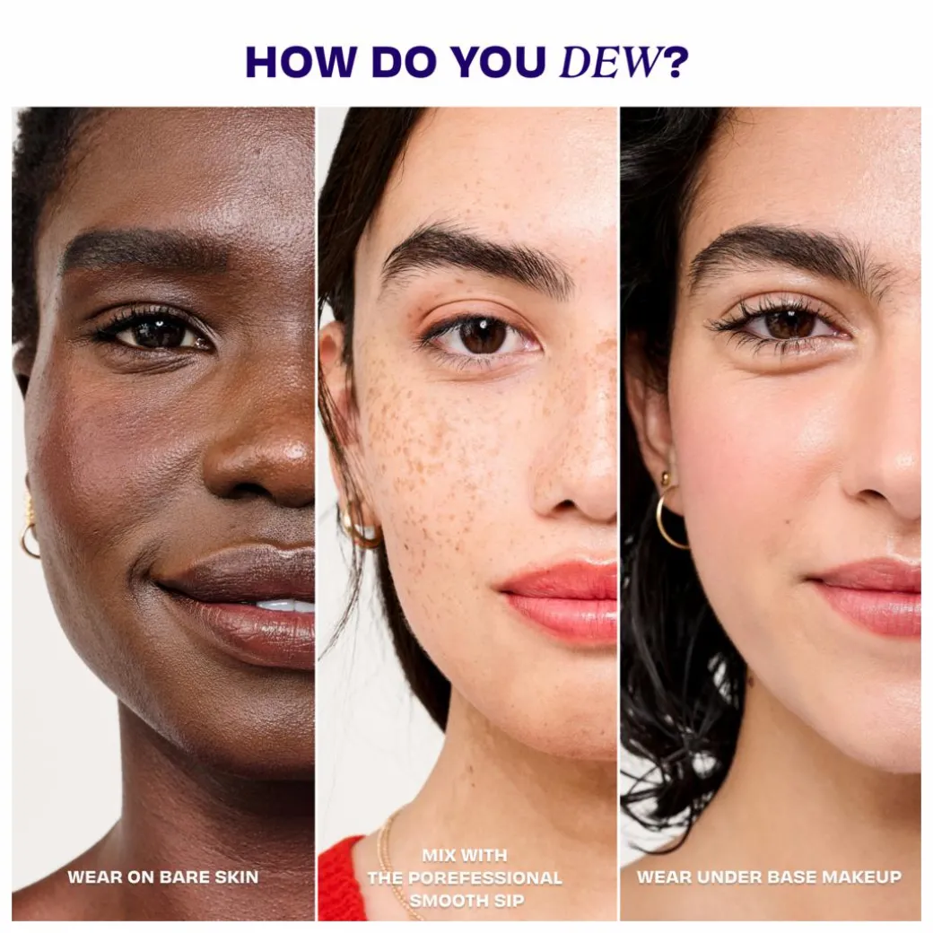 Sparkles and glitter“perfect for fancy parties, New Year’s Eve, and arts & crafts. But in your go-to everyday highlighter? Ehh, maybe not (unless you’re a mermaid?). Enter Dew-la-la, a lightweight, skin-loving liquid highlighter for a sheer, effortless glow (sans sparkles). Think perpetual golden hour meets fresh springtime dew. Plus, thanks to the ingredients, your skin willlook brighter and feel more moisturized over time. Smooth it on for natural-looking, lit-from-within radiance that’ll have you saying…”Dew-la-la!”
