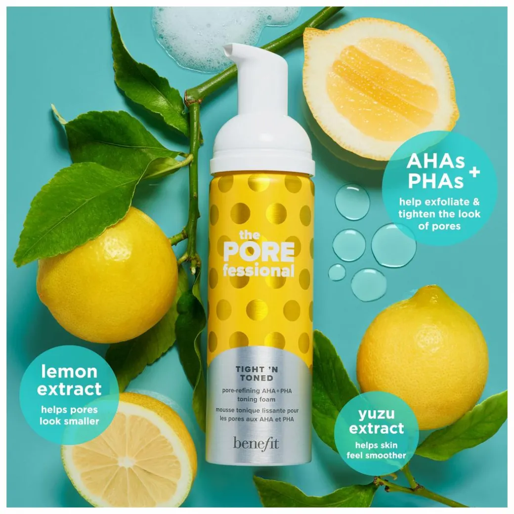This is the easiest and quickest exfoliating face toner you will ever use. One pump of foam = less visible pores.