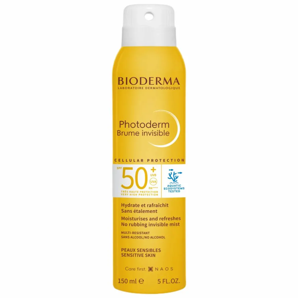 Very high UVA and UVB protection in a flash with the Bioderma Photoderm MAX Sun Mist SPF50+, a spray-on sunscreen for the face and body that you can use on-the-go.