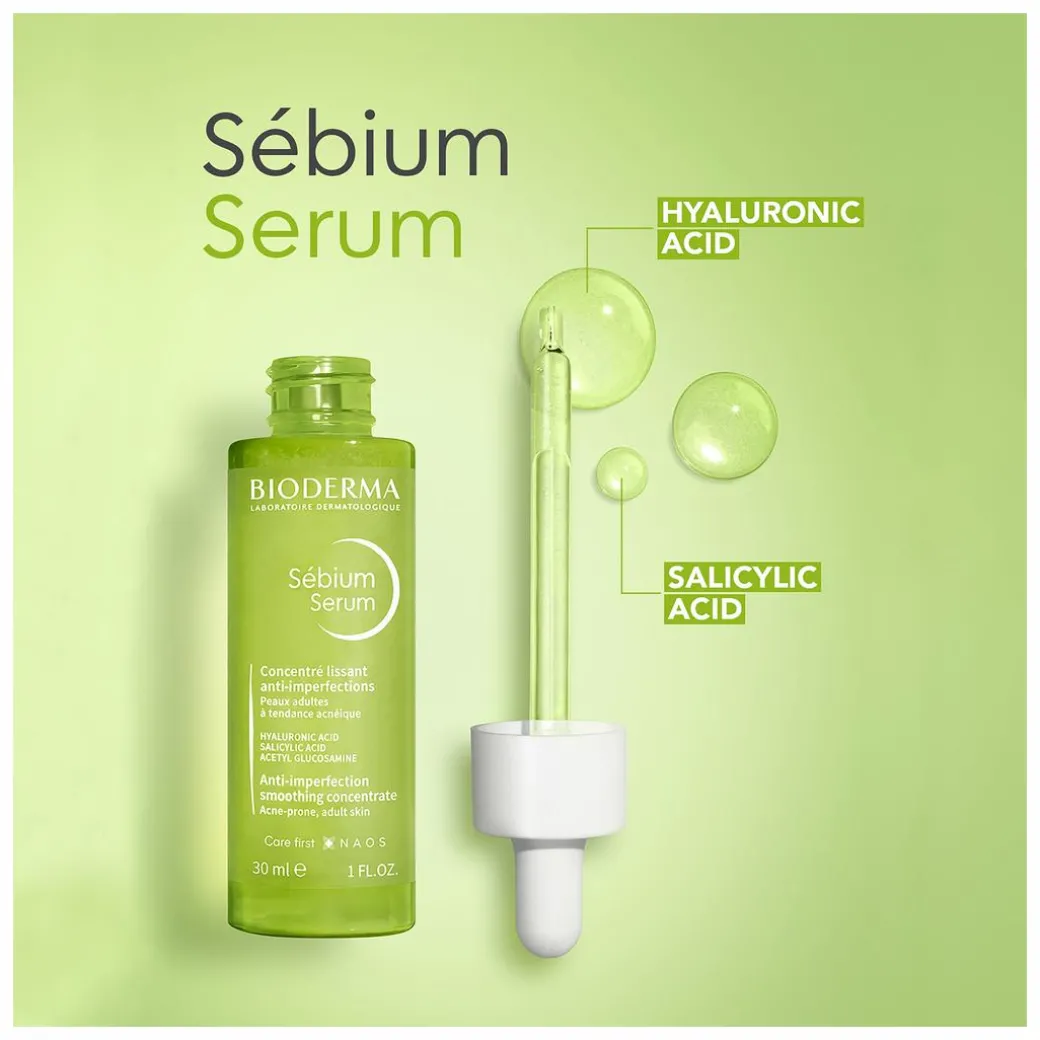 Driven by ecobiology, Bioderma’s Research has developed Sebium Serum, the 1st anti-imperfections and signs of aging ecobiological serum. The complementary action of precisely dosed active ingredients (Salicylic Acid, Acetyl Glucosamine, Hyaluronic acid) and the Technology FLUIDACTIVTM act immediately on the visible signs and the root causes of acne-prone adult skin.