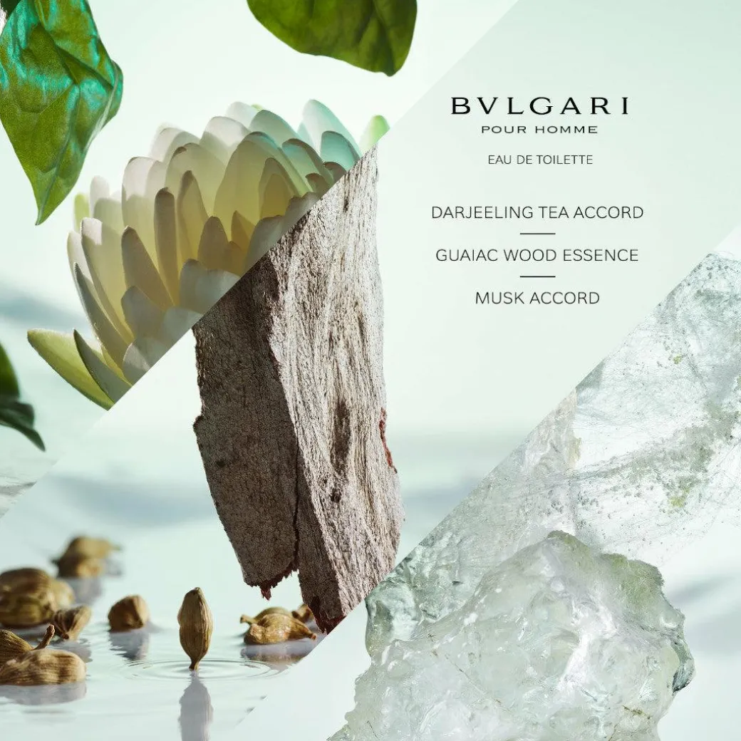 Bvlgari Pour Homme Eau de Toilette, a woody, floral, comfortable and refreshing fragrance, embodying serenity and representing the pursuit of harmony. The natural, leaf-green freshness of Darjeeling tea combined with the comforting facets of musk accords. A timeless and harmonious woody signature.
