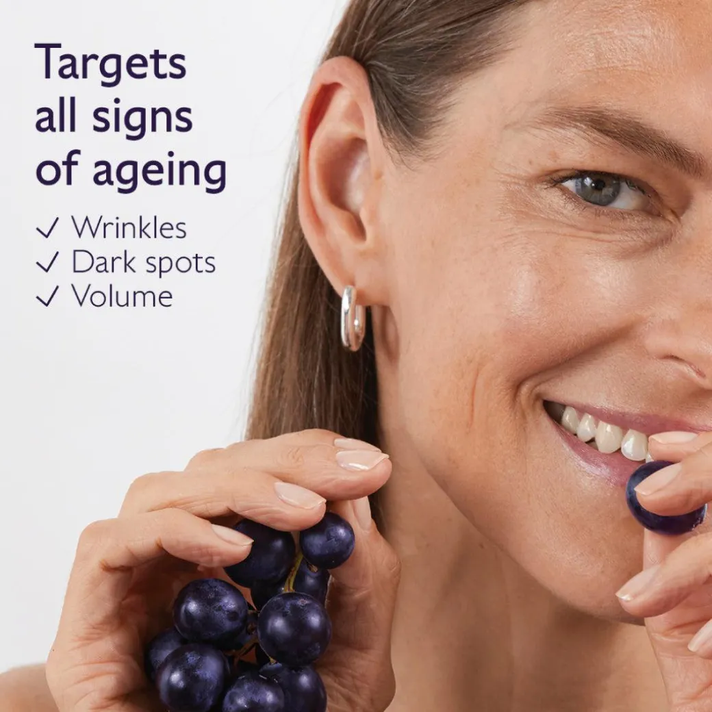 • New and improved formula of patented resveratrol, honokiol and rosewood extract to reinforce the skin