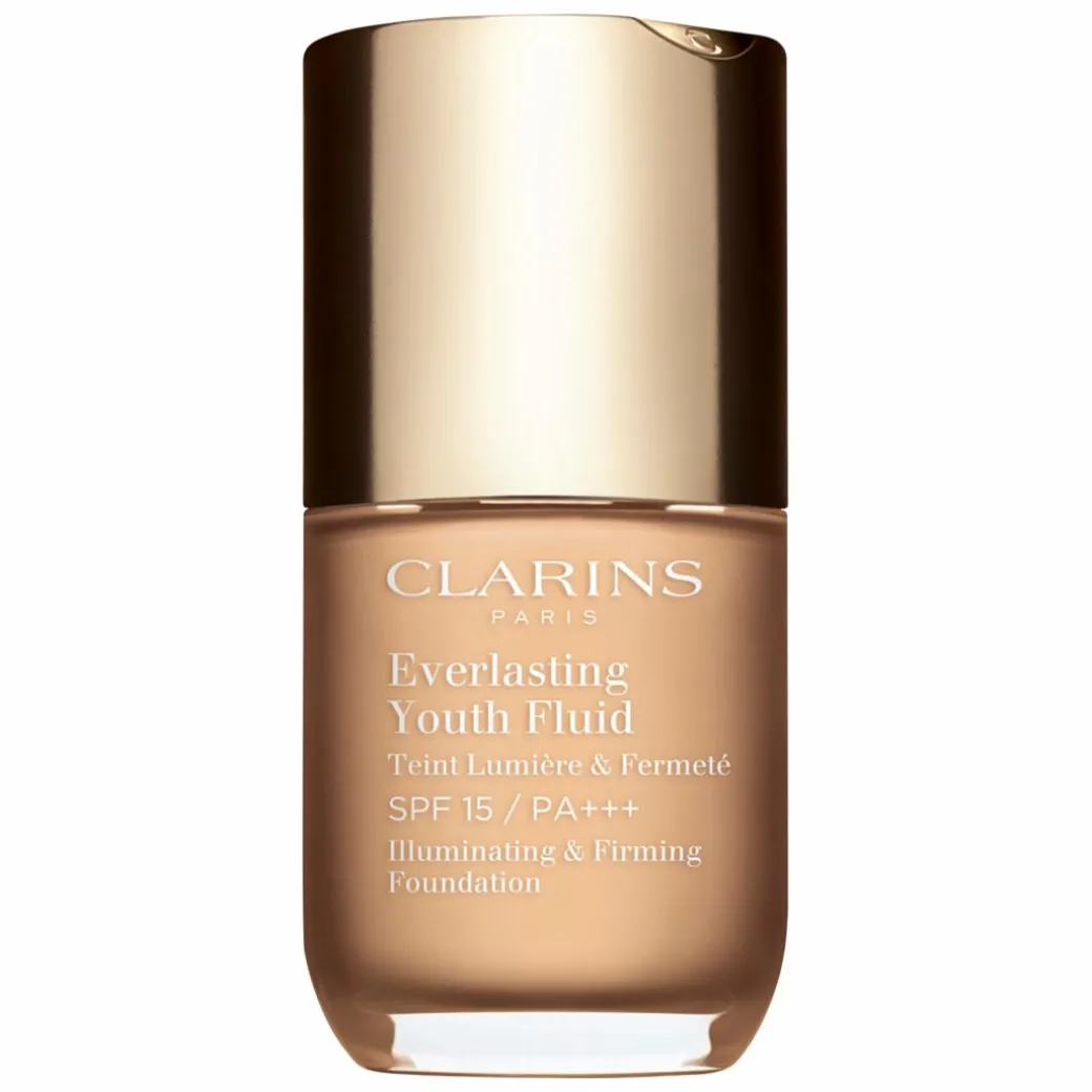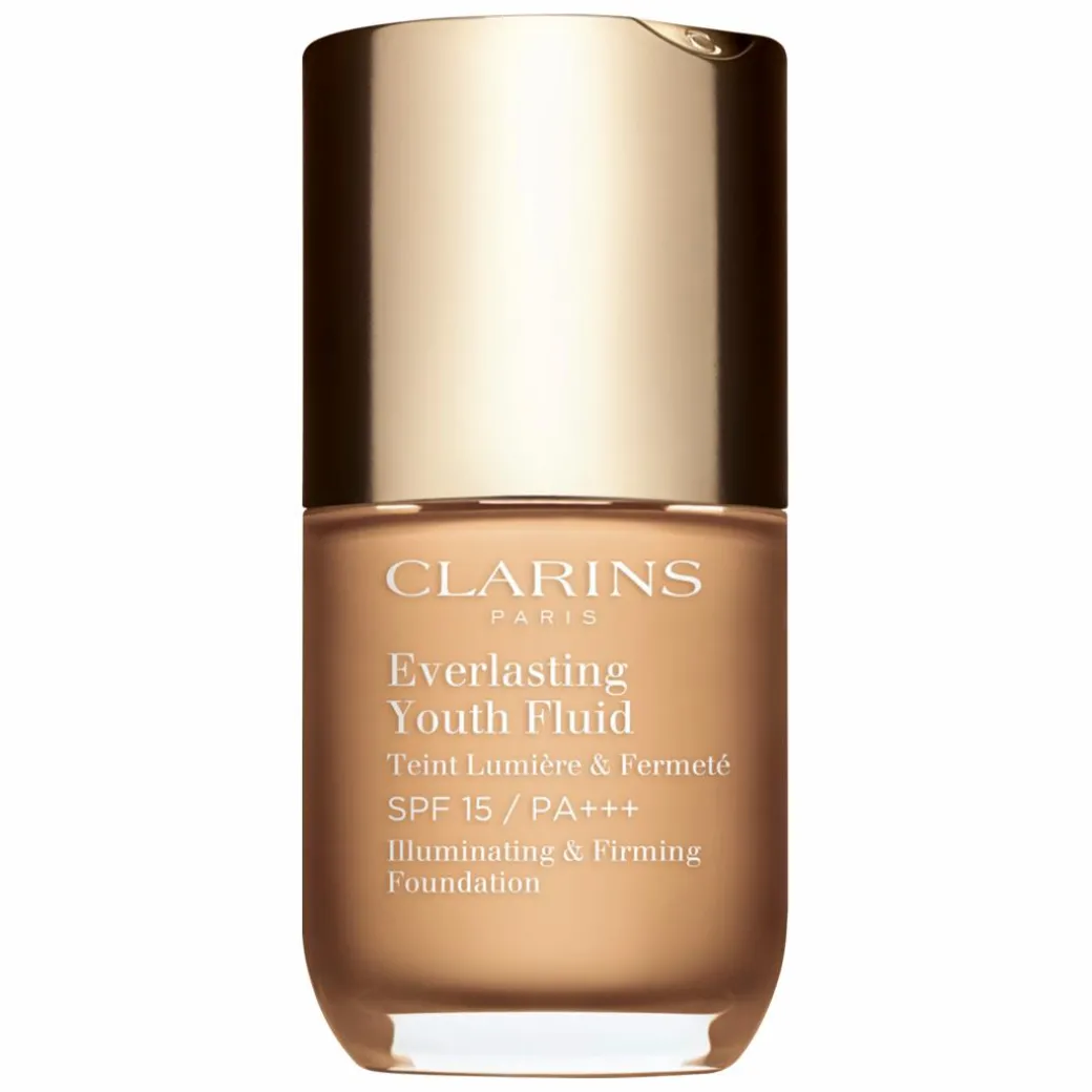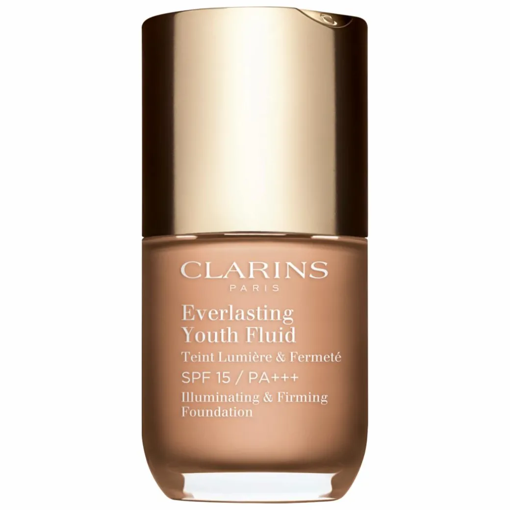 The Clarins Everlasting Youth Fluid Illuminating and Firming Foundation SPF15 is a long-wearing medium coverage formula that won’t set into fine lines and wrinkles.