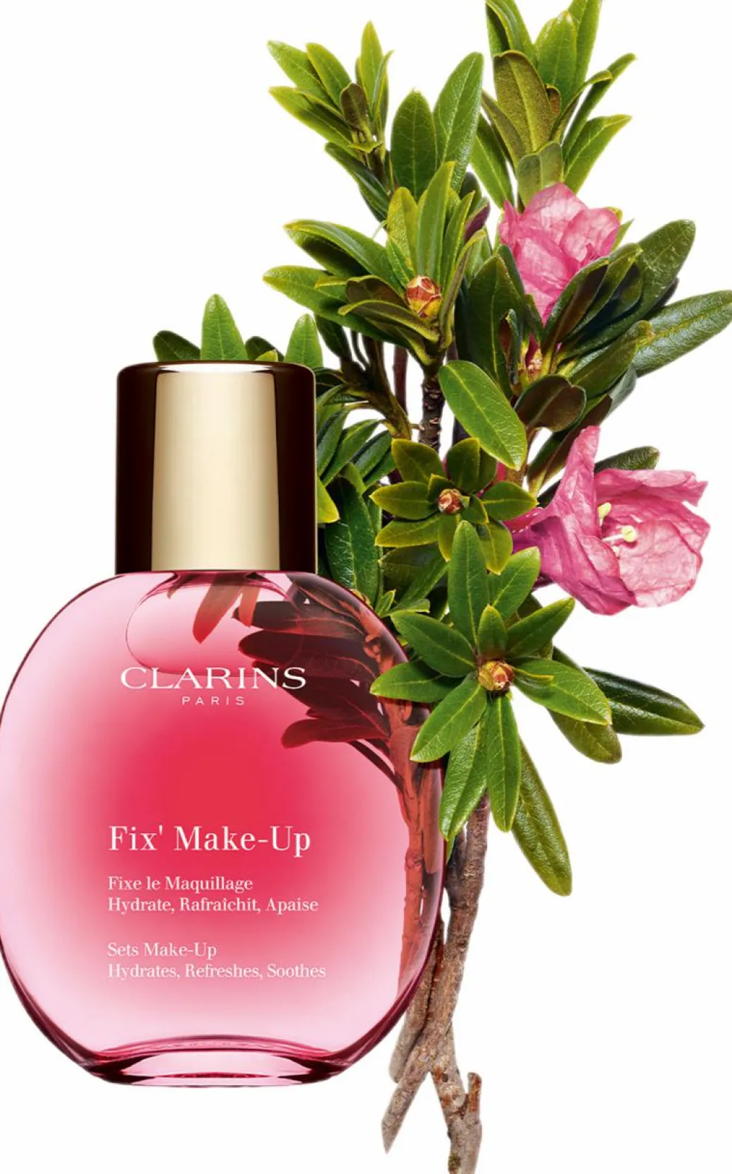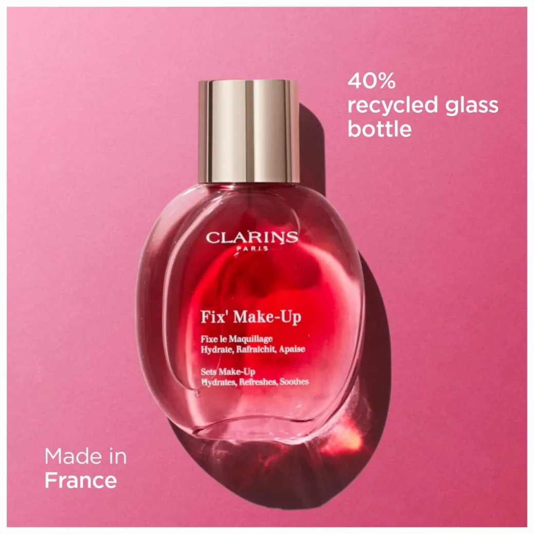 In just one simple step, Clarins Fix’ Make-Up ensures 24H make-up hold* and leaves skin beautifully radiant day after day. Its soothing mist holds make-up, maintaining its fresh and radiant appearance, while protecting and hydrating the skin, leaving it instantly refreshed.