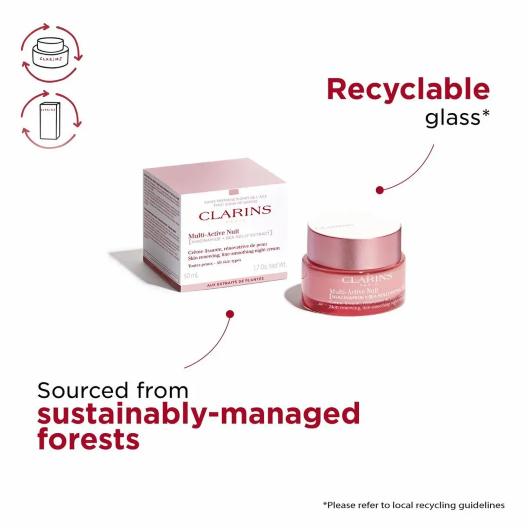 The Multi-Active Night Cream comes in a carton printed on paper from sustainably managed forests.