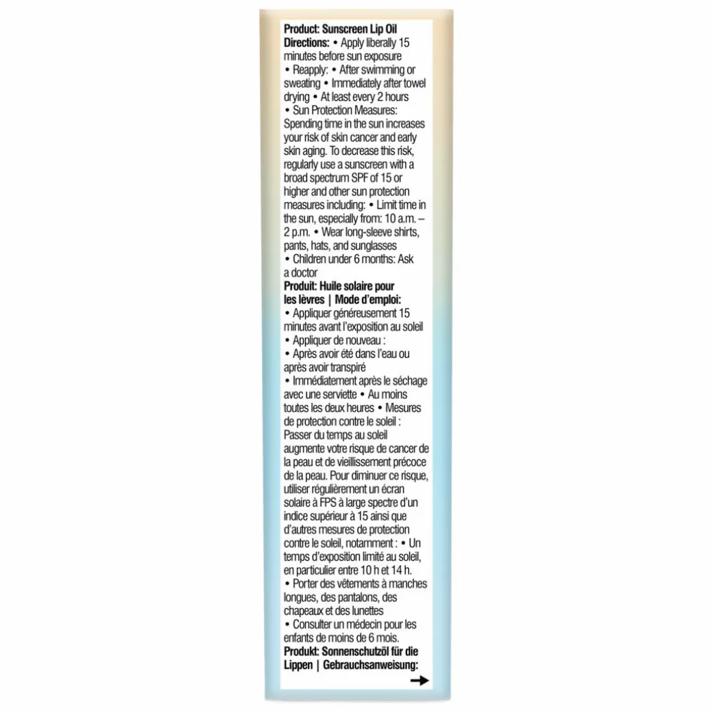Use alone for a beautiful glow or apply over your favourite lipstick for added shine and protection. Make sure you apply the lip oil onto your lips 15 minutes before sun exposure. Remember to reapply your Liplux Oil at least every two hours immediately after swimming, sweating or towel drying.